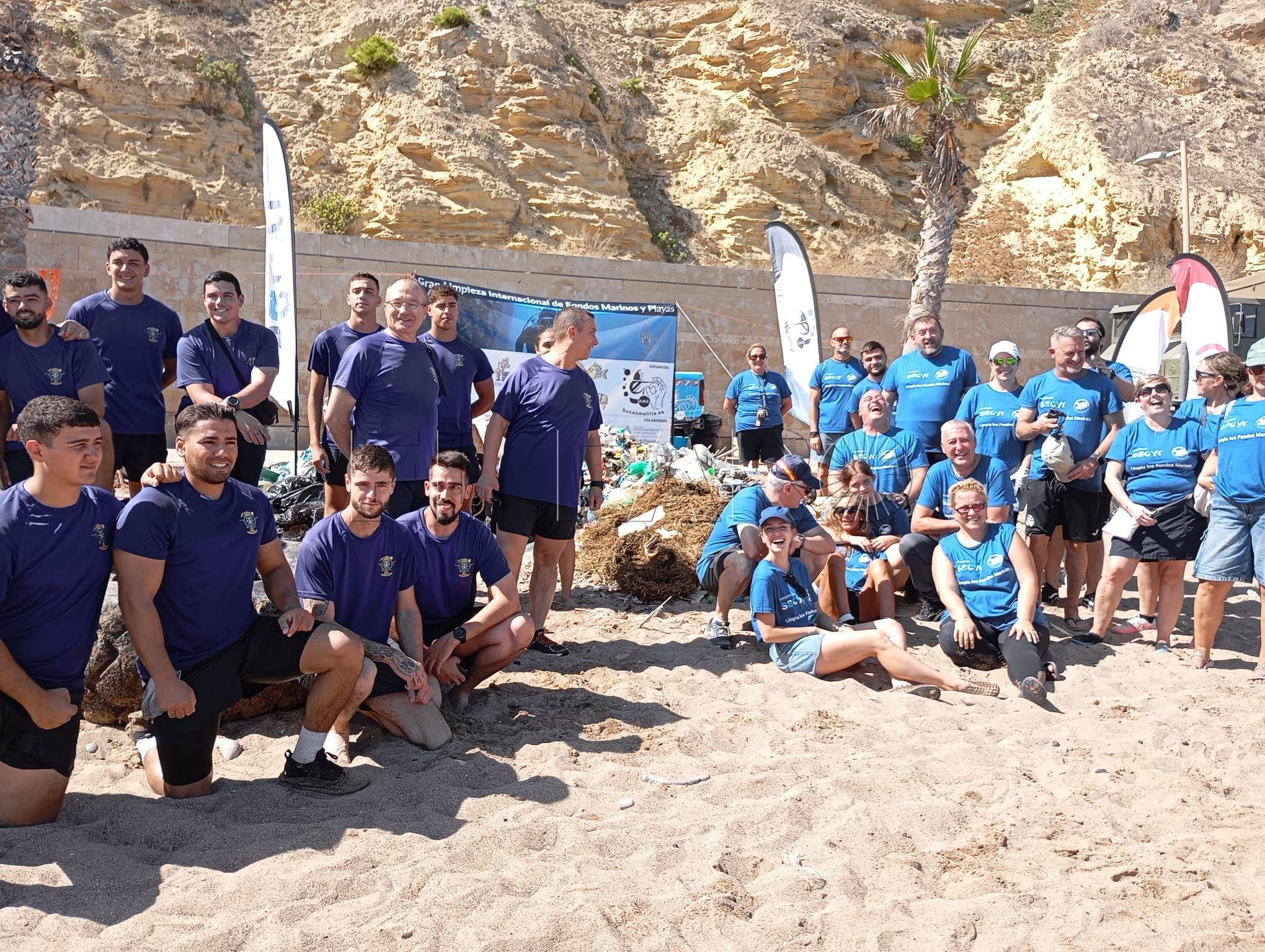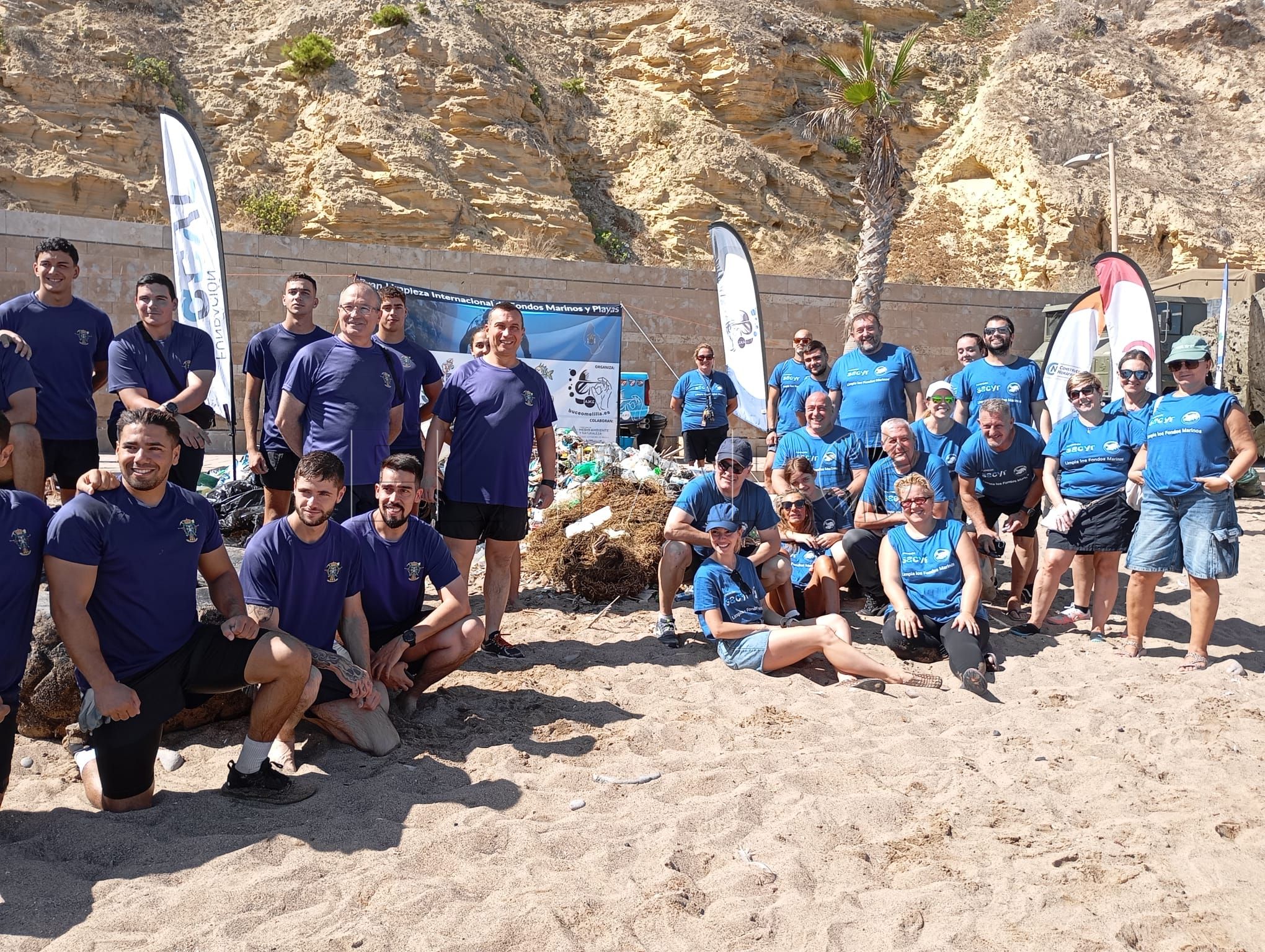 En la iniciativa, que cumple 11 años, como siempre, han colaborado militares del Regimiento de Ingenieros nº 8 y algunas embarcaciones -kayaks-, así como el servicio de Medio Ambiente de limpieza del litoral.