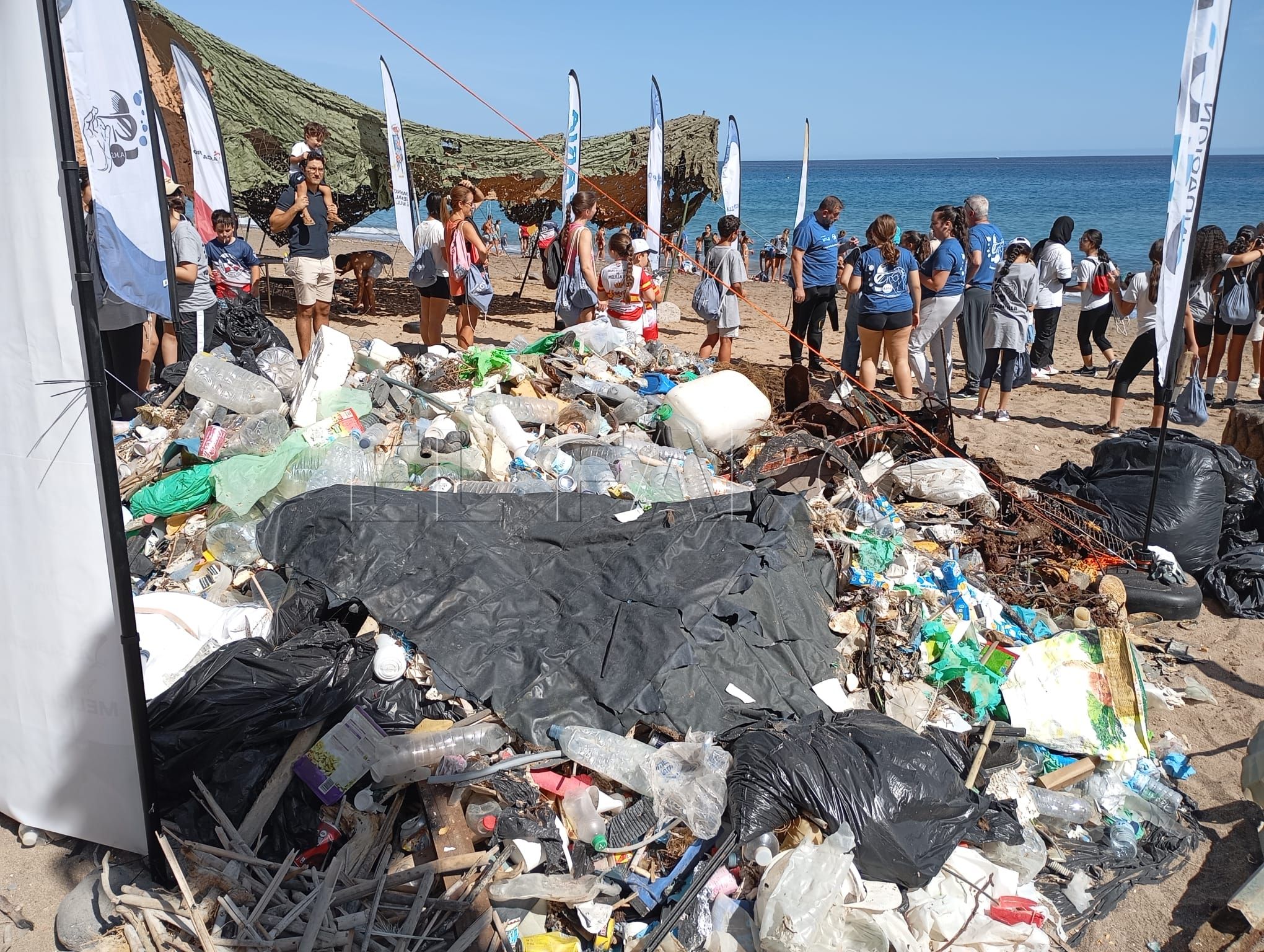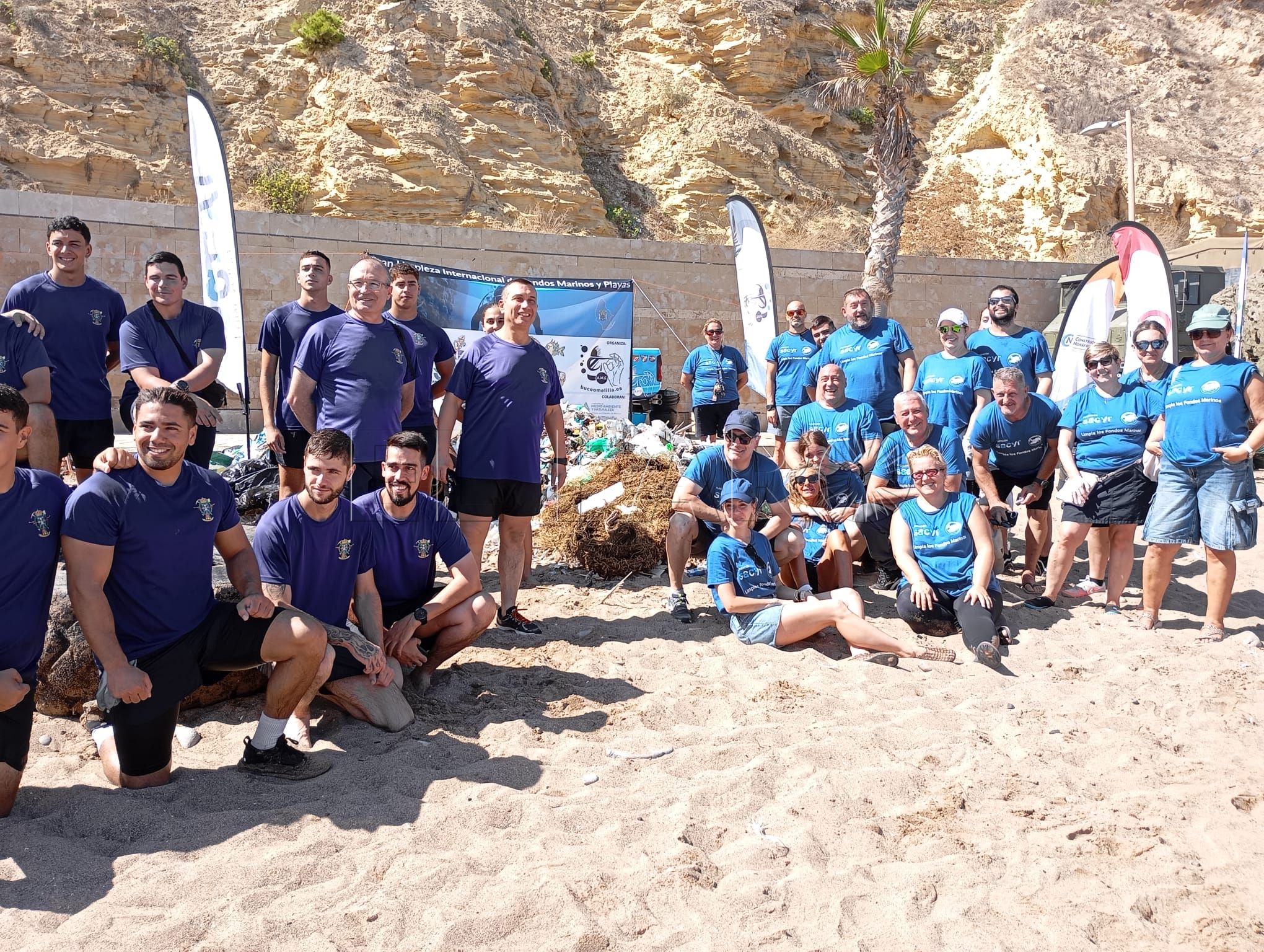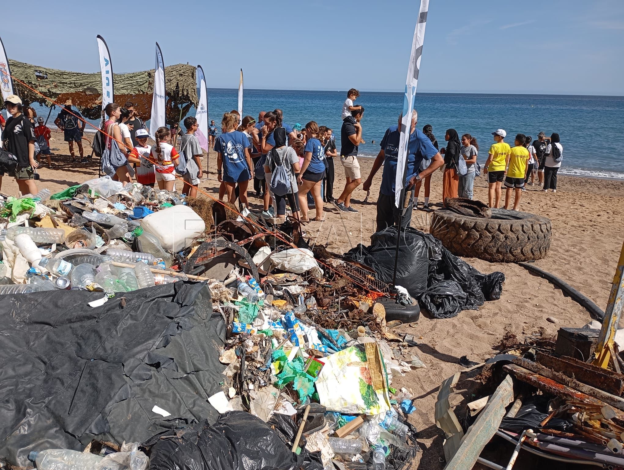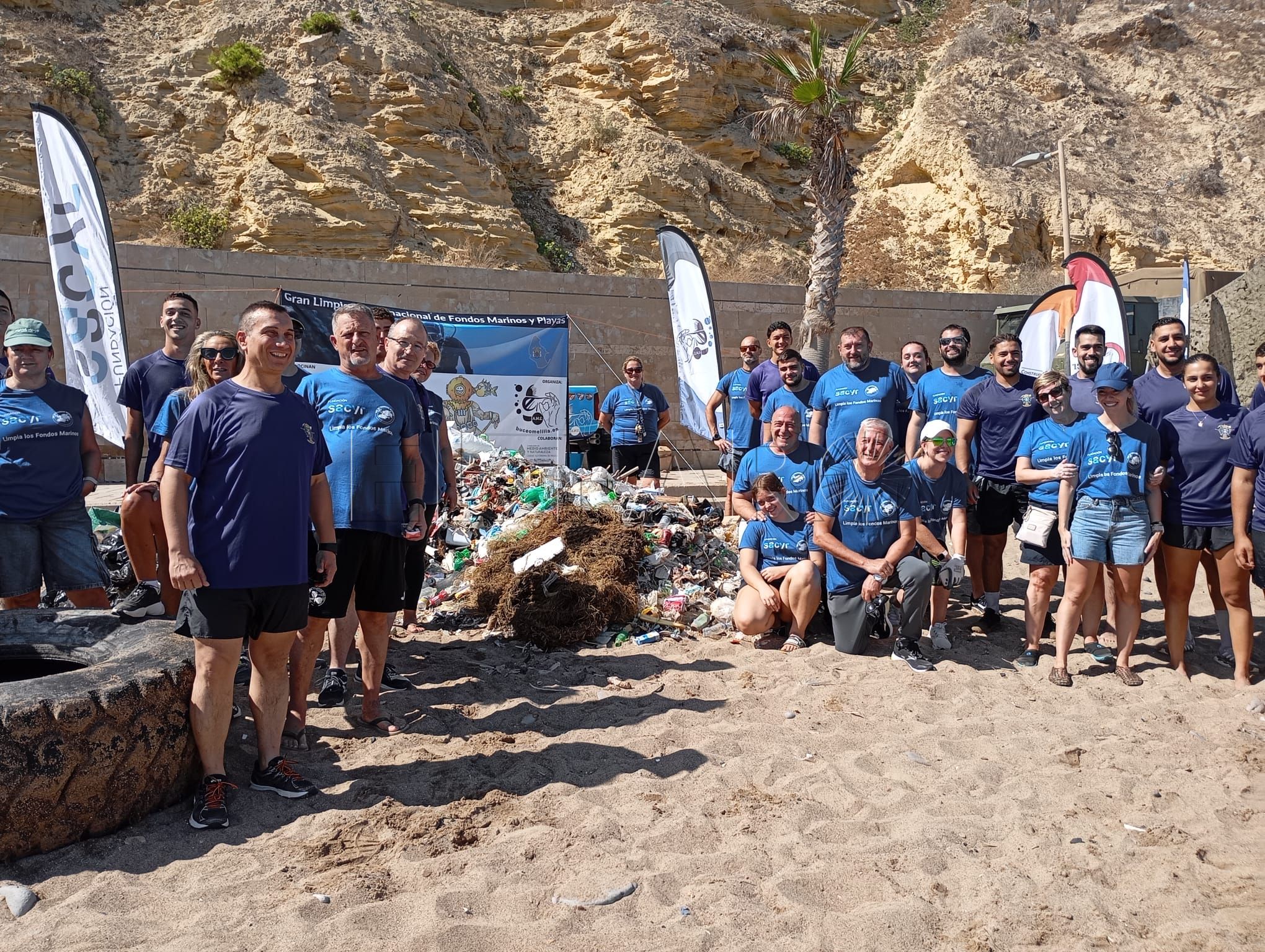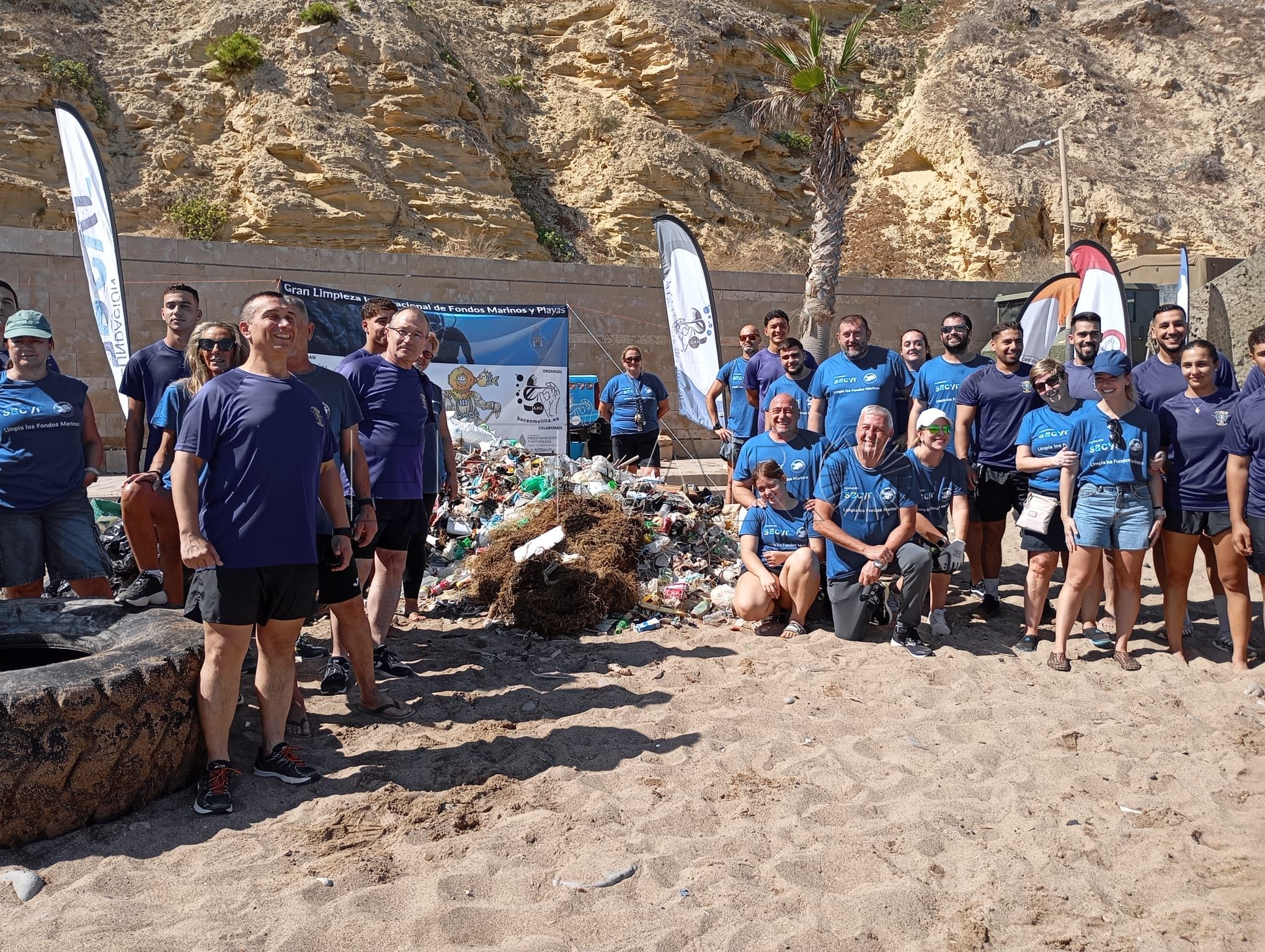 La iniciativa del Club Buceo Melilla para la limpieza del fondo marino y la playa de Horcas Coloradas se ha saldado con más de 2.000 kilos de residuos recogidos entre metales, ruedas y microplásticos.