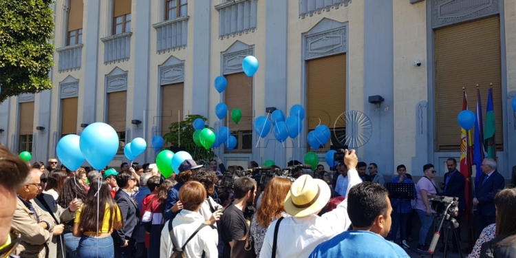 Para finalizar el acto se soltaron globos azules y verdes que acabaron con un fuerte aplauso. A dicho acto, que tuvo gran éxito y acogida por parte del pueblo melillense, acudieron las principales autoridades de la ciudad, los miembros de la Comunidad Gitana, los miembros de las diferentes Comunidades religiosas y las Asociaciones Culturales.