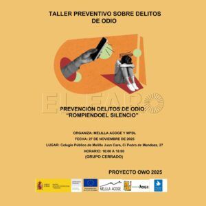 Dentro de su amplio programa de actividades, Melilla Acoge llevará a cabo mañana jueves un taller informativo-preventivo sobre delitos de odio. Esta iniciativa se celebrará en colaboración con Movimiento por la Paz Melilla (MPDL).