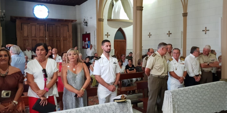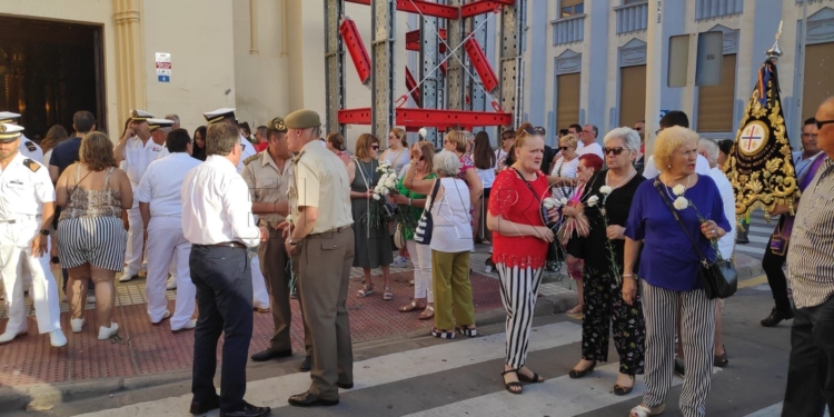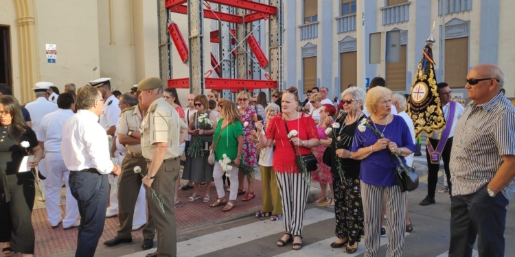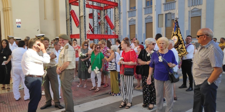 La Castrense ha acogido a decenas de melillenses que asisten a la misa y luego van a acompañar a la Virgen a la plaza que hay bajo las murallas de El Pueblo, donde un barco recuerda que Melilla tuvo una vez una flota pesquera. La tradición de homenajear a aquellos marineros que arriesgaban sus vidas en el mar y que tenían presente siempre a la Virgen del Carmen se cumple con la ofrenda de claveles.