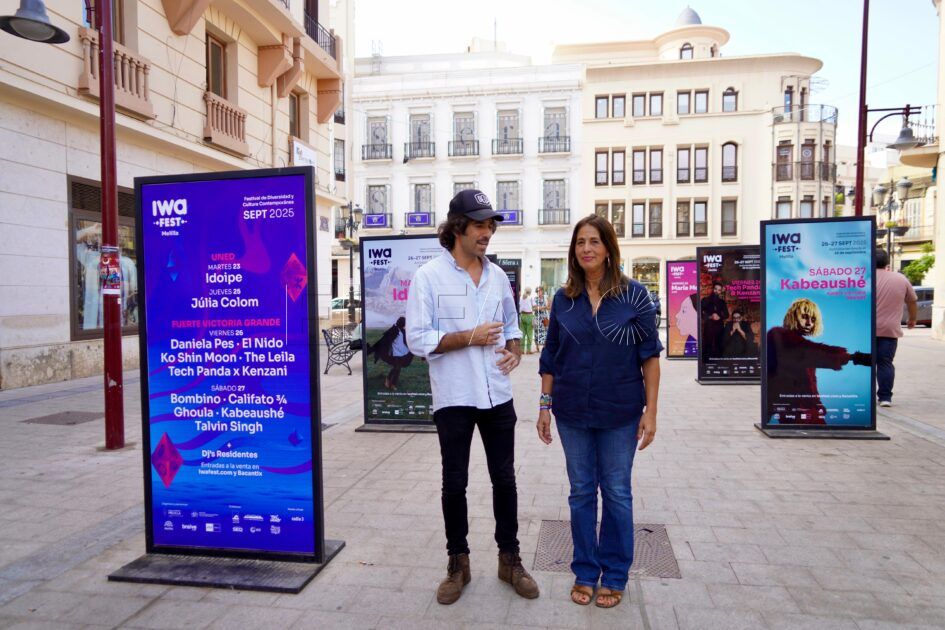 El corazón del centro histórico de Melilla, en la calle Cándido Lobera, se ha transformado este viernes en un escaparate cultural gracias a la presentación oficial del Iwa Fest 2025, el Festival de Diversidad y Cultura Contemporánea del Mediterráneo, que este año celebra su cuarta edición. Frente al Teatro Kursaal, la consejera de Cultura, Fadela Mohatar, y el director del festival, Borja Ramón, han inaugurado la muestra artística urbana compuesta por diez mupis que sirven de introducción visual y conceptual al espíritu de esta cita cultural de referencia.
