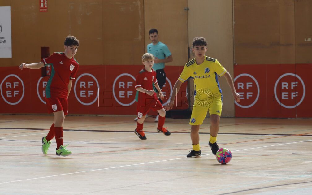 El combinado Sub 14, dirigido por Antonio Valdivieso, fue el primero en saltar a la pista y, pese a comenzar por debajo en el marcador, supo recomponerse con carácter y determinación. El tanto inicial del vasco Kimetz, que ponía el 0-1, no descentró a los melillenses, que a partir de ese momento ofrecieron su mejor versión.