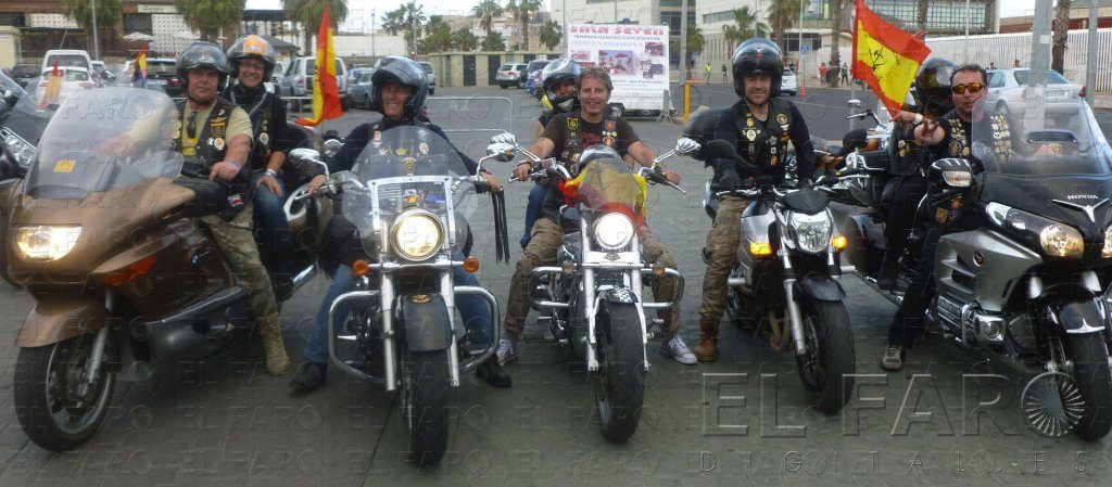 Mientra estos se divertían, los melillenses se acercaban al aparcamiento que hay frente al puerto deportivo para admirar las motos. La gran mayoría tenía colgada una bandera de la Legión. Y es que los legionarios de Melilla entregaron a cada participante una bandera de España con los símbolos de esta unidad del Ejército.