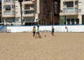 Además del relax, San Lorenzo fue también escenario de actividad física. Un grupo de jóvenes improvisó un animado partido de fútbol en las porterías instaladas en la playa. El terreno de arena se convirtió en un improvisado campo de juegos, y durante más de una hora se pudo ver a chicos y chicas corriendo, chutando y celebrando goles amistosos en un ambiente totalmente distendido.