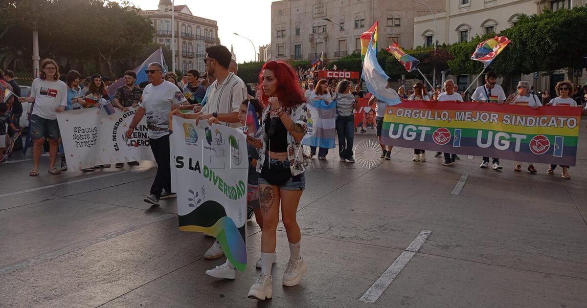 Con una bandera guía por primera vez en la colorida marcha y otra de 10 metros con el color arcoiris que identifica al colectivo, encabezaron el desfile detrás de la pancarta con el lema ‘Ser LGTBI+ más allá de las grandes ciudades’ diversas autoridades, como Sabrina Moh, Laura Segura y Elena Fernández Treviño por parte de la Delegación del Gobierno y del PSOE y Marta Fernández de Castro, Fadwa Abdehadj, Cristina Rivas, Randa Mohamed y Miguel Ángel Fernández Bonnemaison por parte del PP y de la Ciudad Autónoma.