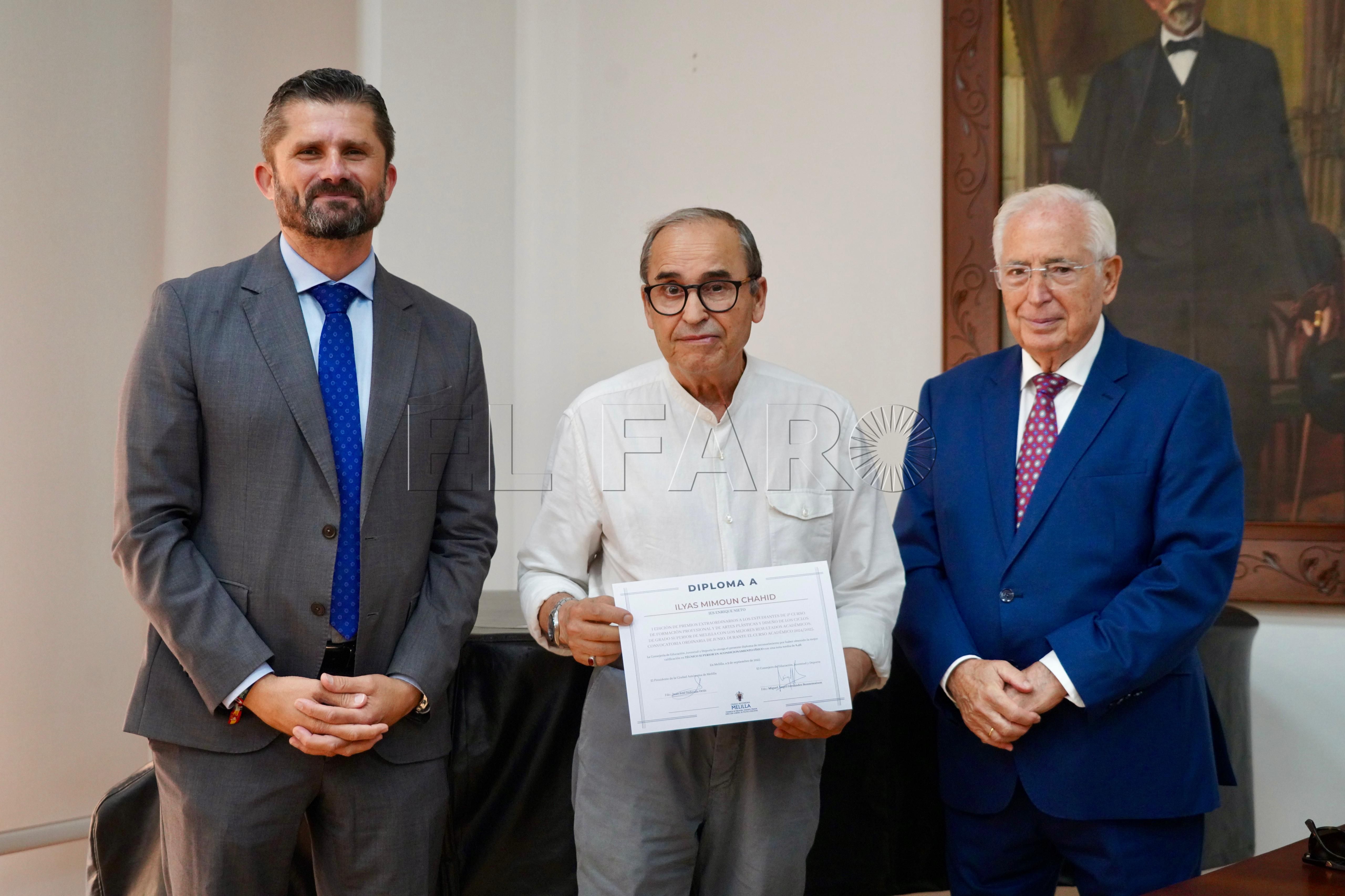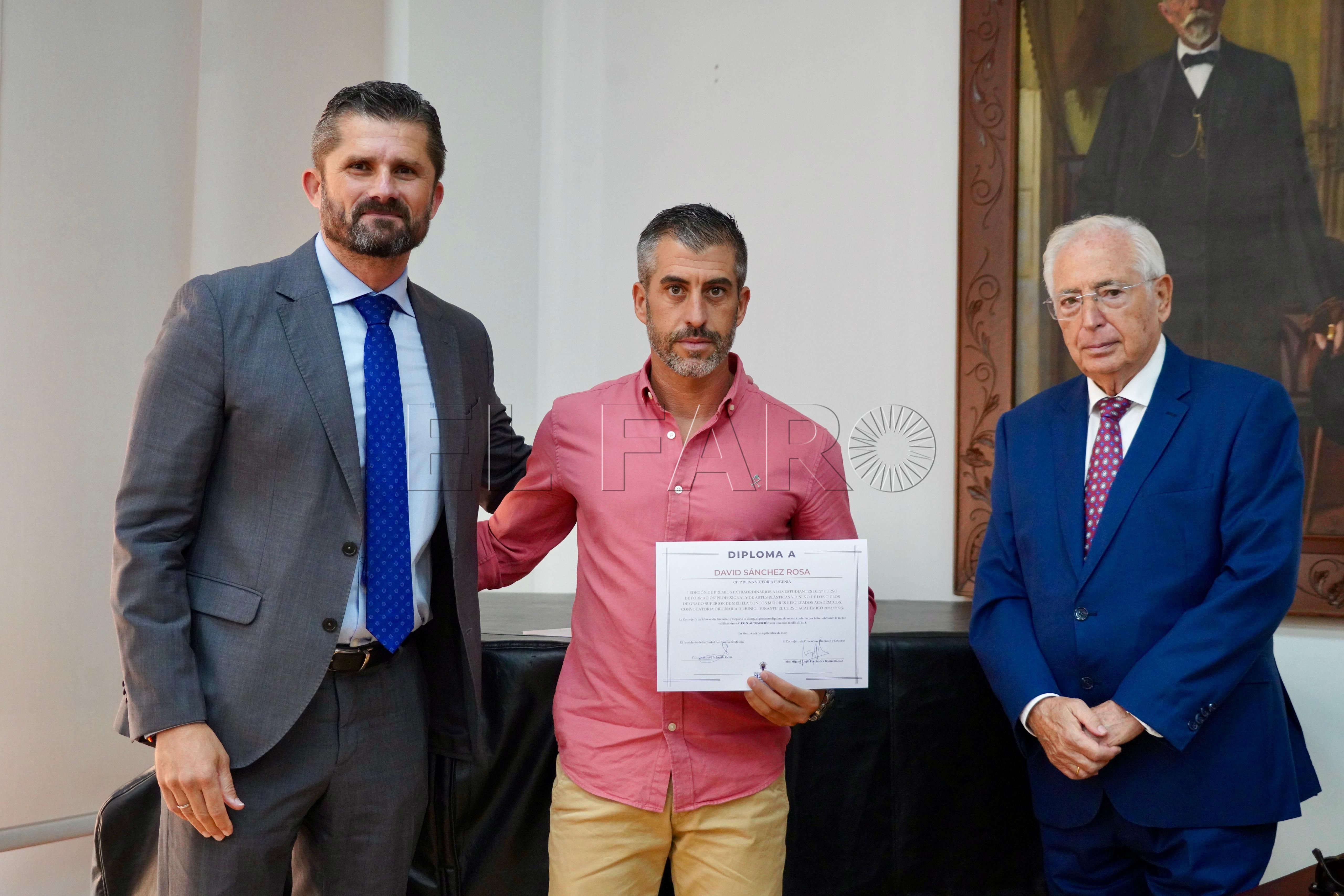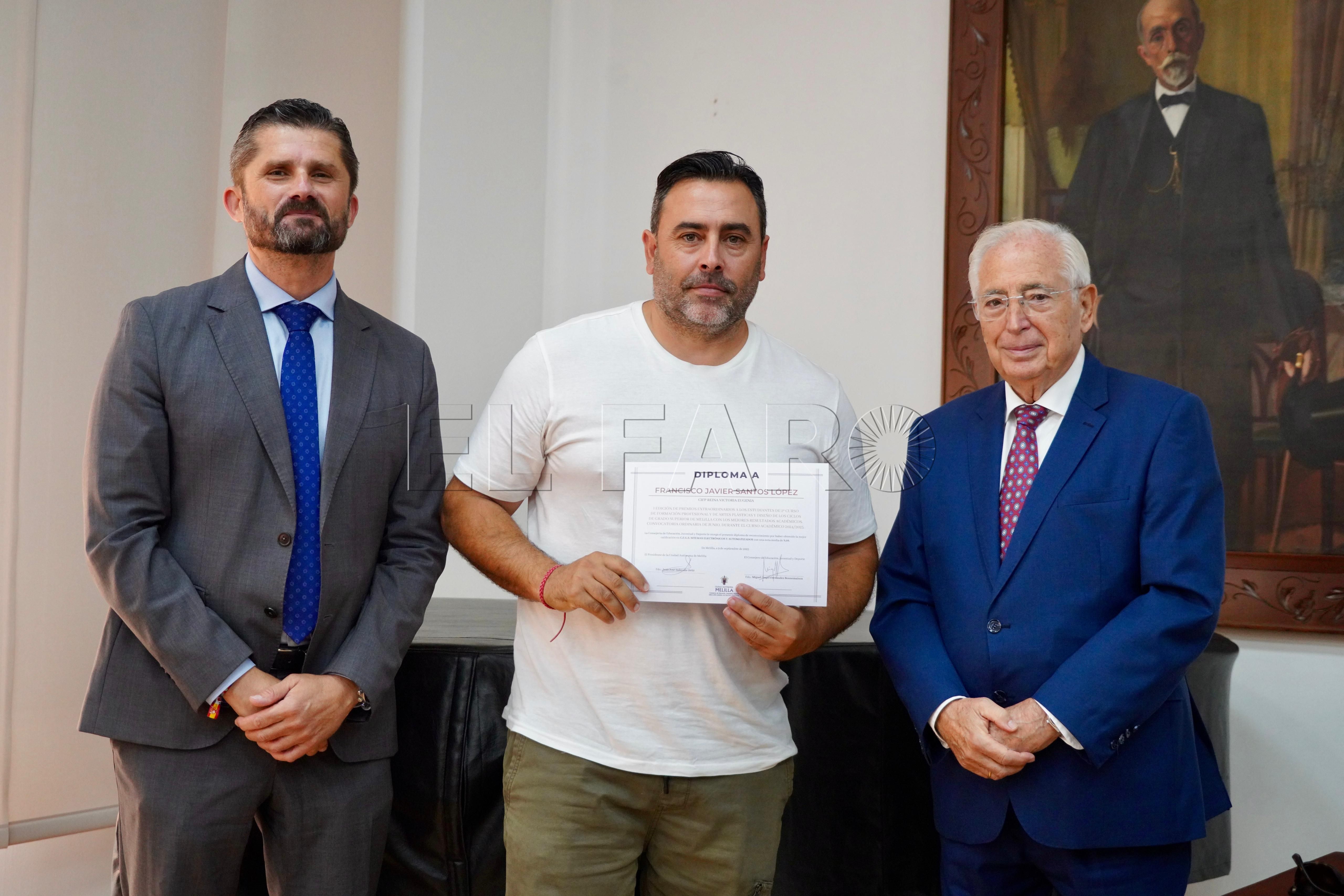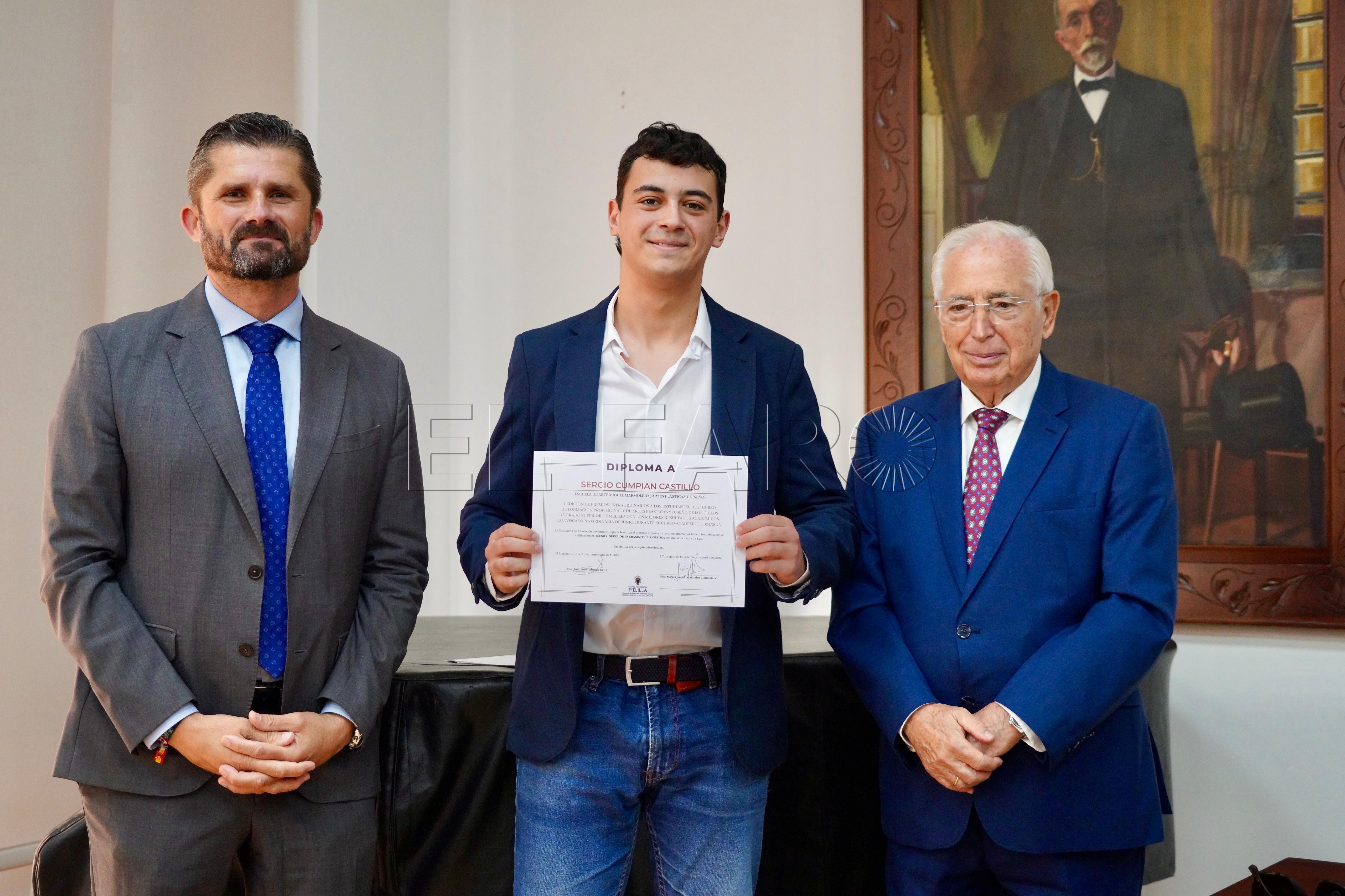 La Consejería de Cultura ha acogido esta mañana, a las 12:15 horas, la entrega de premios a los mejores expedientes de Formación Profesional y enseñanzas artísticas de la ciudad. El acto ha contado con la presencia del presidente de Melilla, Juan José Imbroda, el consejero de Educación, Miguel Ángel Fernández, y el director general de Política Educativa, David Azancot.