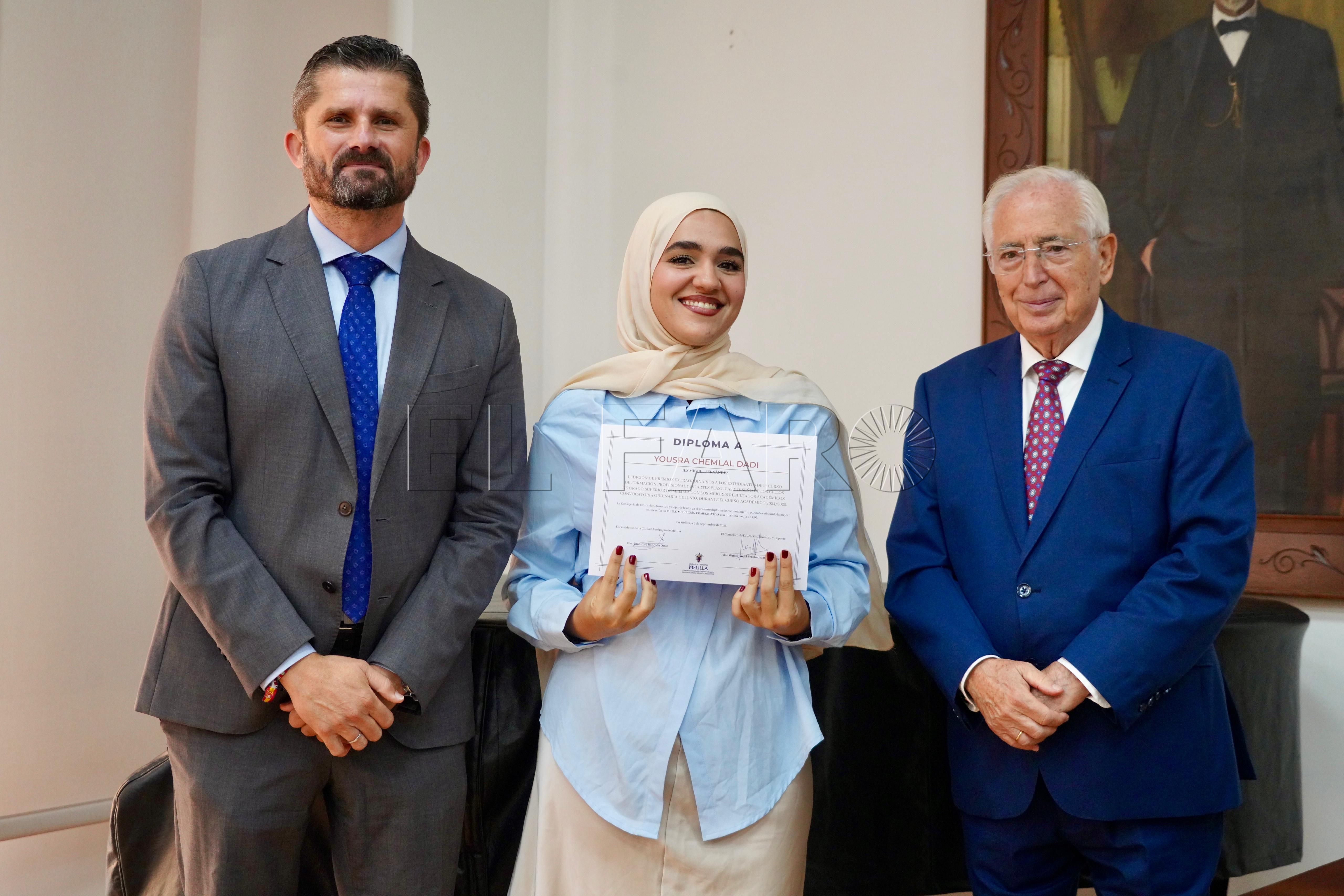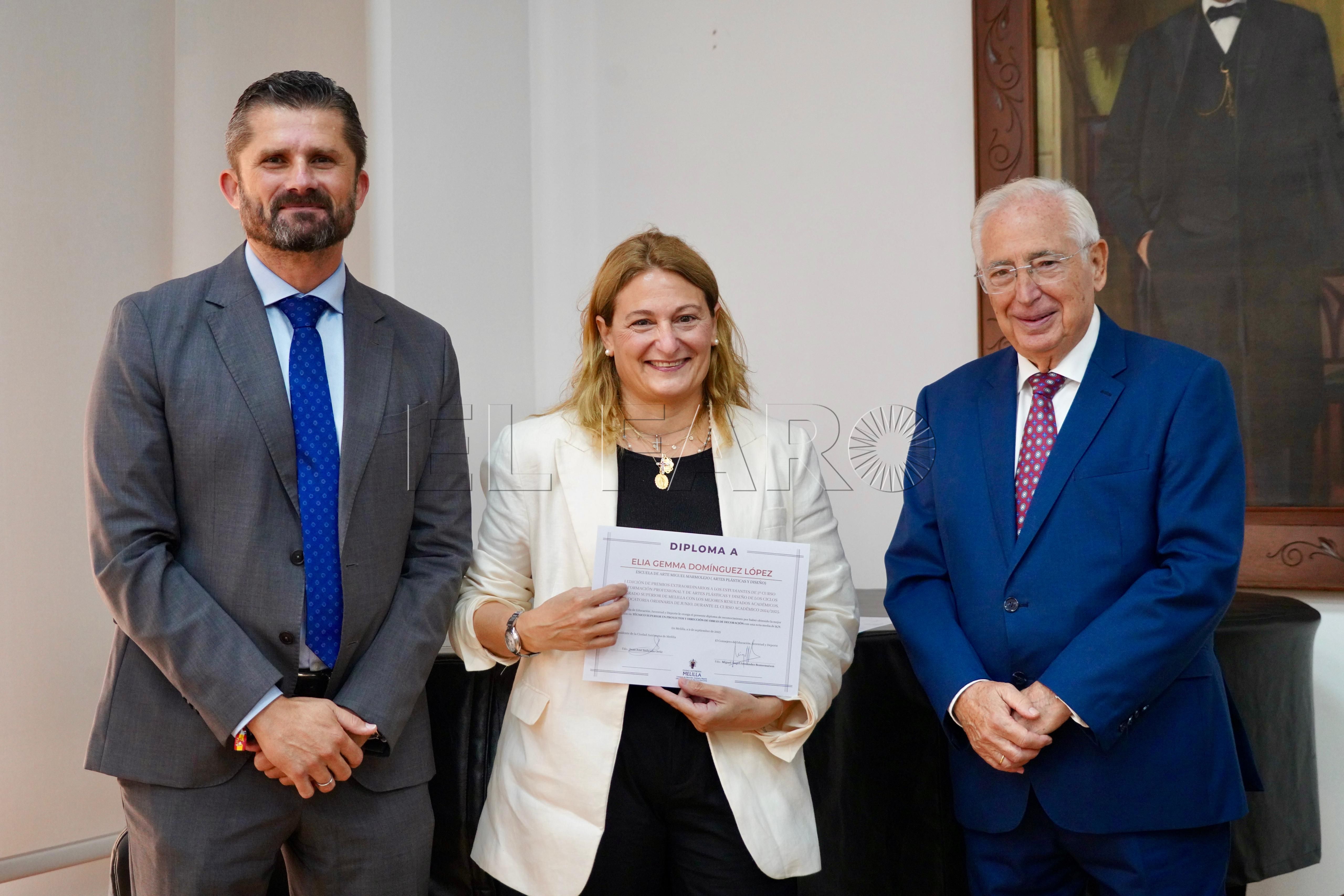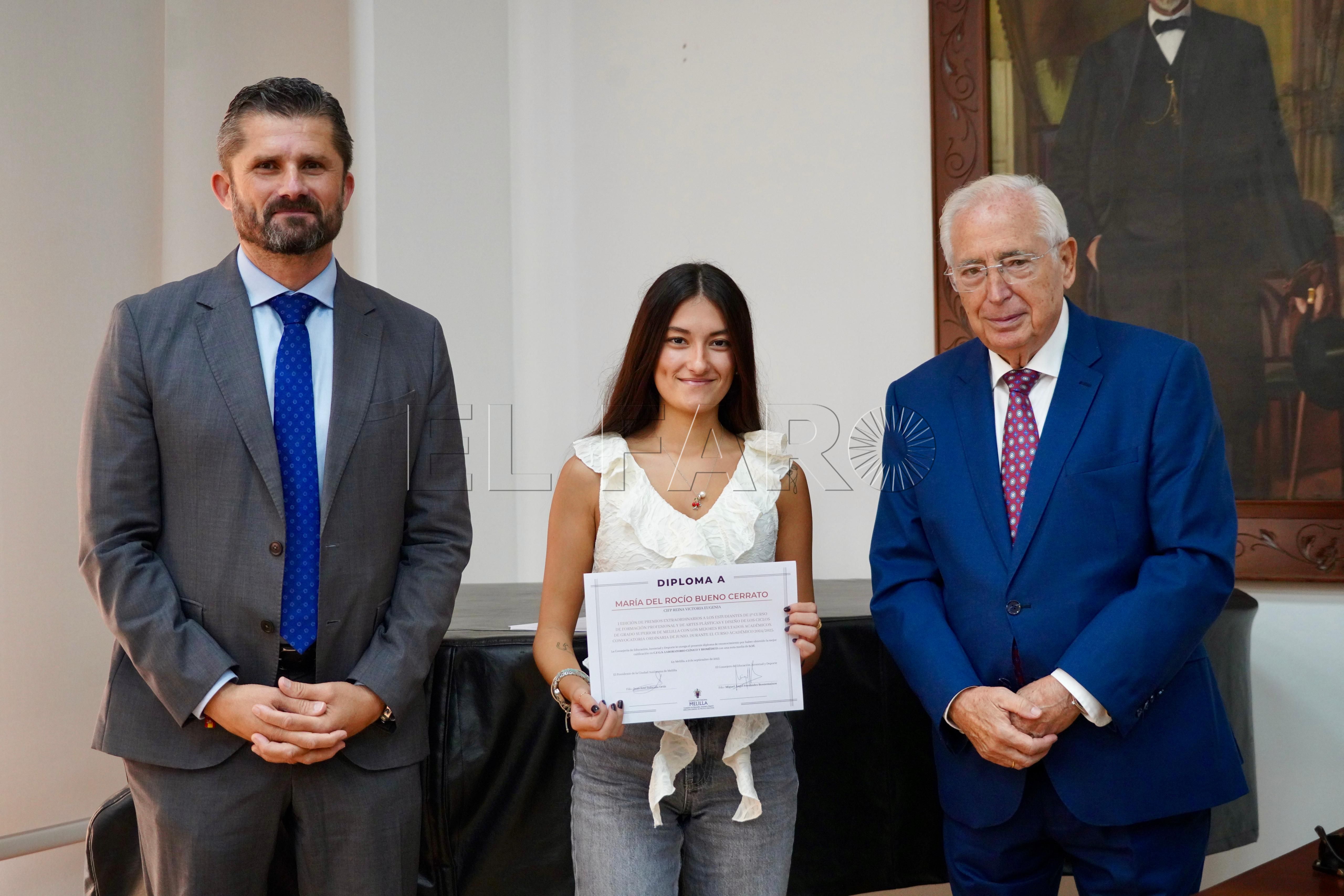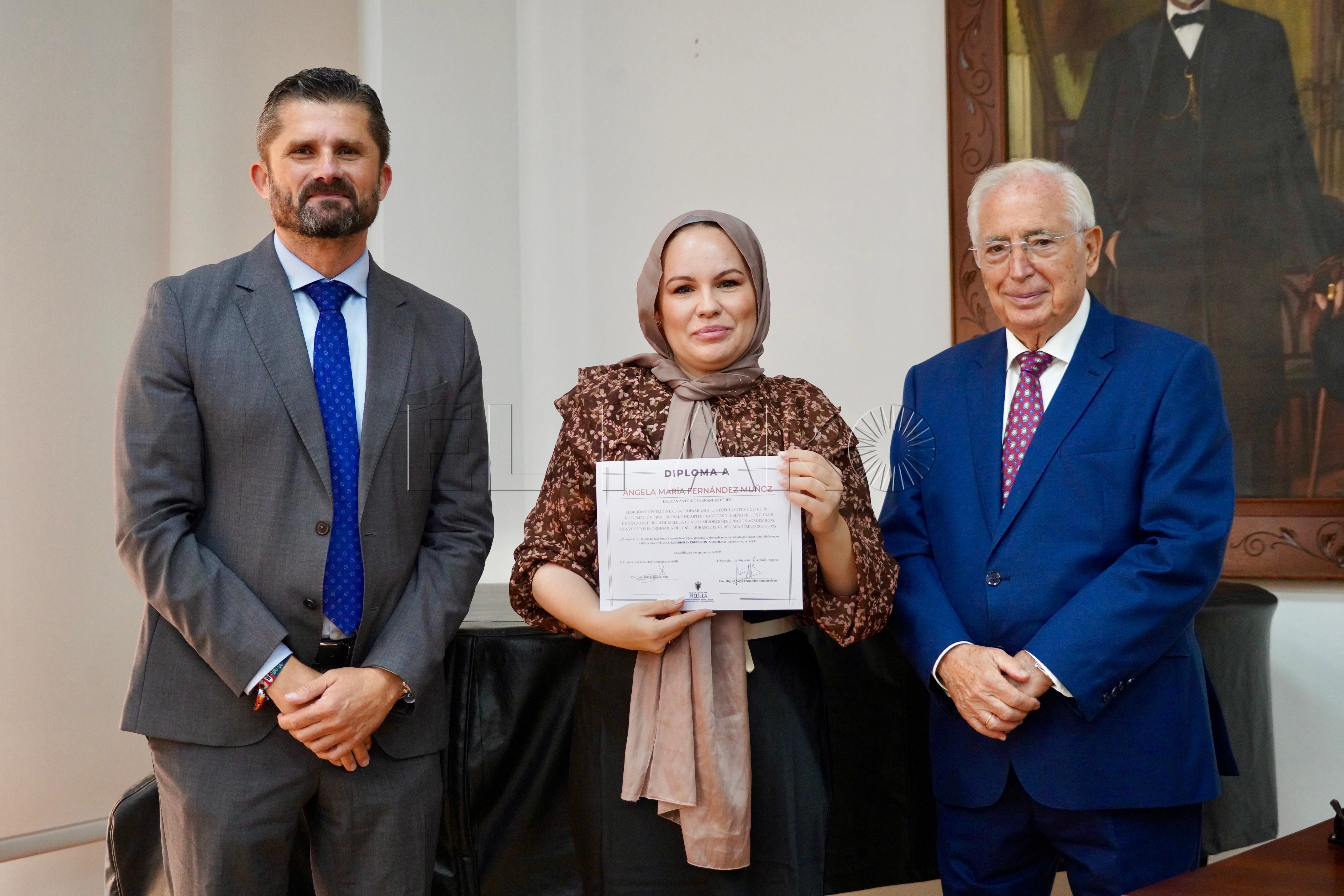 La Consejería de Cultura ha acogido esta mañana, a las 12:15 horas, la entrega de premios a los mejores expedientes de Formación Profesional y enseñanzas artísticas de la ciudad. El acto ha contado con la presencia del presidente de Melilla, Juan José Imbroda, el consejero de Educación, Miguel Ángel Fernández, y el director general de Política Educativa, David Azancot.