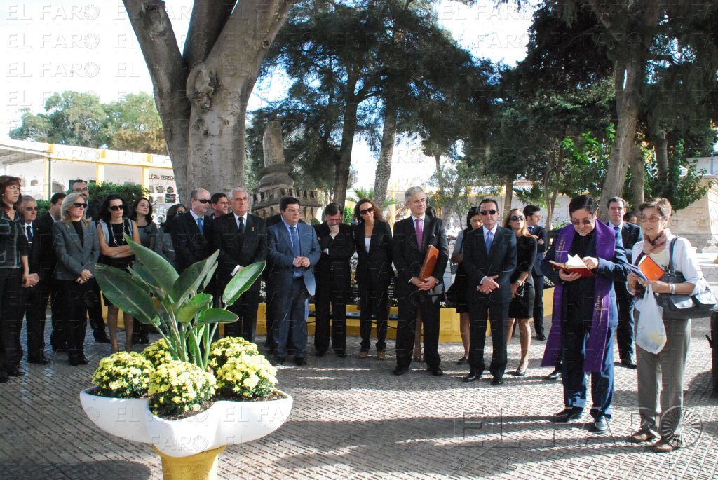De la treintena de sepulturas que se visitan cada 2 de noviembre, ayer únicamente fueron once · Imbroda hizo mención especial a Cándido Lobera, “figura a retomar, por ser un visionario del s. XXI”. El Cementerio Municipal de la Purísima volvió a ser el escenario ayer, Día de los Fieles Difuntos, del tradicional acto que la Asamblea de Melilla realiza cada 2 de noviembre depositando una corona de flores en los sepulcros de destacadas personalidades de la historia reciente melillense así como el recuerdo a las víctimas de atentados terroristas o catástrofes como las del accidente aéreo en el 97 o las de los depósitos en el 98. Sin embargo, este año el homenaje ha sido el más corto de su historia, pues de la treintena de sepulturas que se visitaba tiempo atrás, ayer únicamente se impusieron once coronas.