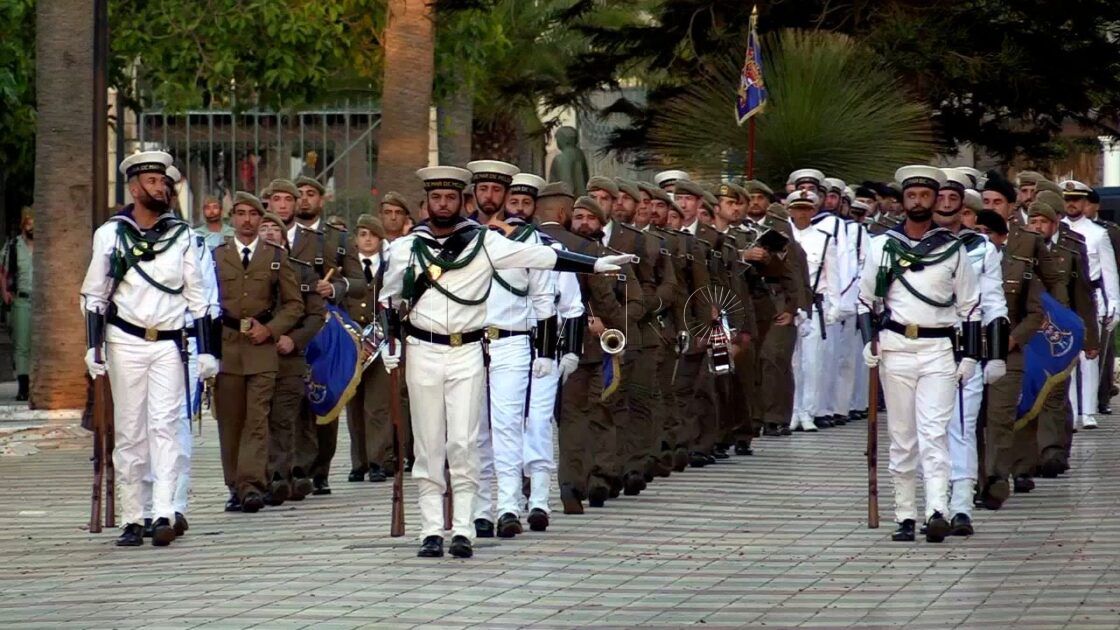 El sonido de los tambores y las cornetas, junto con el ondear de las banderas, puso el broche de oro a un acto que simboliza la unión entre las instituciones militares y la ciudadanía melillense.