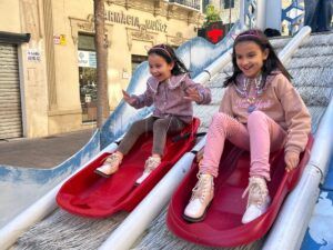 La atracción permite a los participantes subir por una pasarela lateral y deslizarse en trineos individuales por dos pistas paralelas, todo ello rodeado de luces y decoración festiva. Se trata de una actividad segura, dinámica y pensada para el disfrute familiar. El Snow Slide permanecerá activo hasta el 4 de enero, en horario de 11.00 a 14.00 horas y de 17.30 a 20.30 horas.