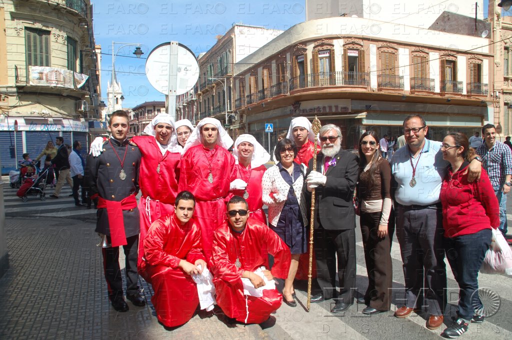 Los hermanos mayores de todas las cofradías, junto al presidente de la Ciudad, Juan José Imbroda, y el vicario episcopal, Roberto Rojo Aguado, participaron activamente del momento culminante de la Semana Santa, que de nuevo volvió a hermanar a los portadores de ambas imágenes, y un año más cumplieron con la tradición de intercambiar los tronos para alzarlos al cielo, entre los aplausos y los ‘vivas’ sucesivos del público asistente.