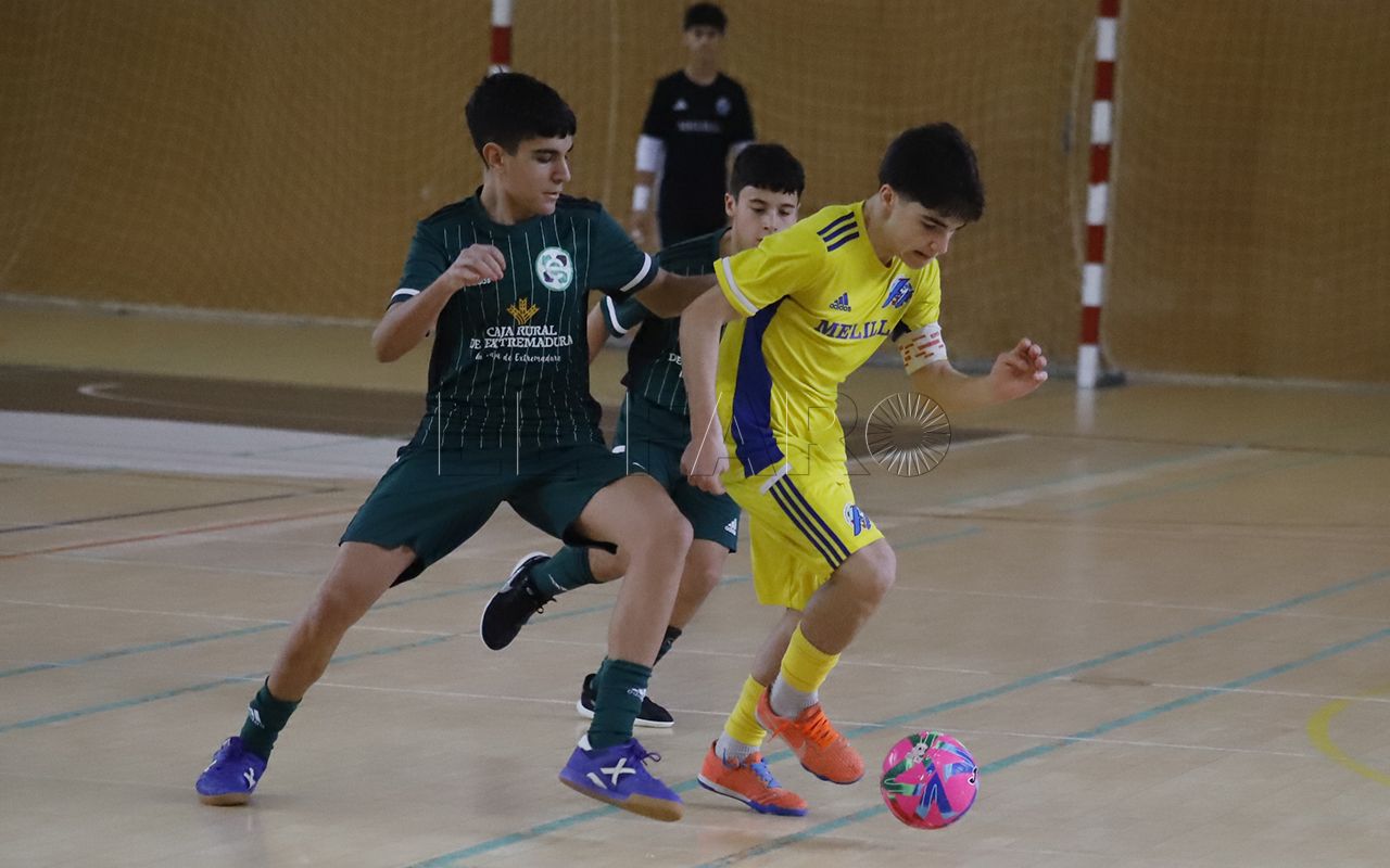 La selección Sub-14 de fútbol sala de Melilla ha logrado este sábado un importante triunfo por 3-5 ante Extremadura, en la cuarta jornada del Campeonato de España de Selecciones Autonómicas que se celebra en Zaragoza. Con esta victoria, los melillenses aseguran la segunda posición del grupo y llegan con opciones de pelear por el liderato ante Cataluña en la jornada final. El conjunto dirigido por Antonio Valdivieso realizó un partido muy completo en líneas generales, mostrando solidez táctica, compromiso defensivo y eficacia en los momentos clave del encuentro.