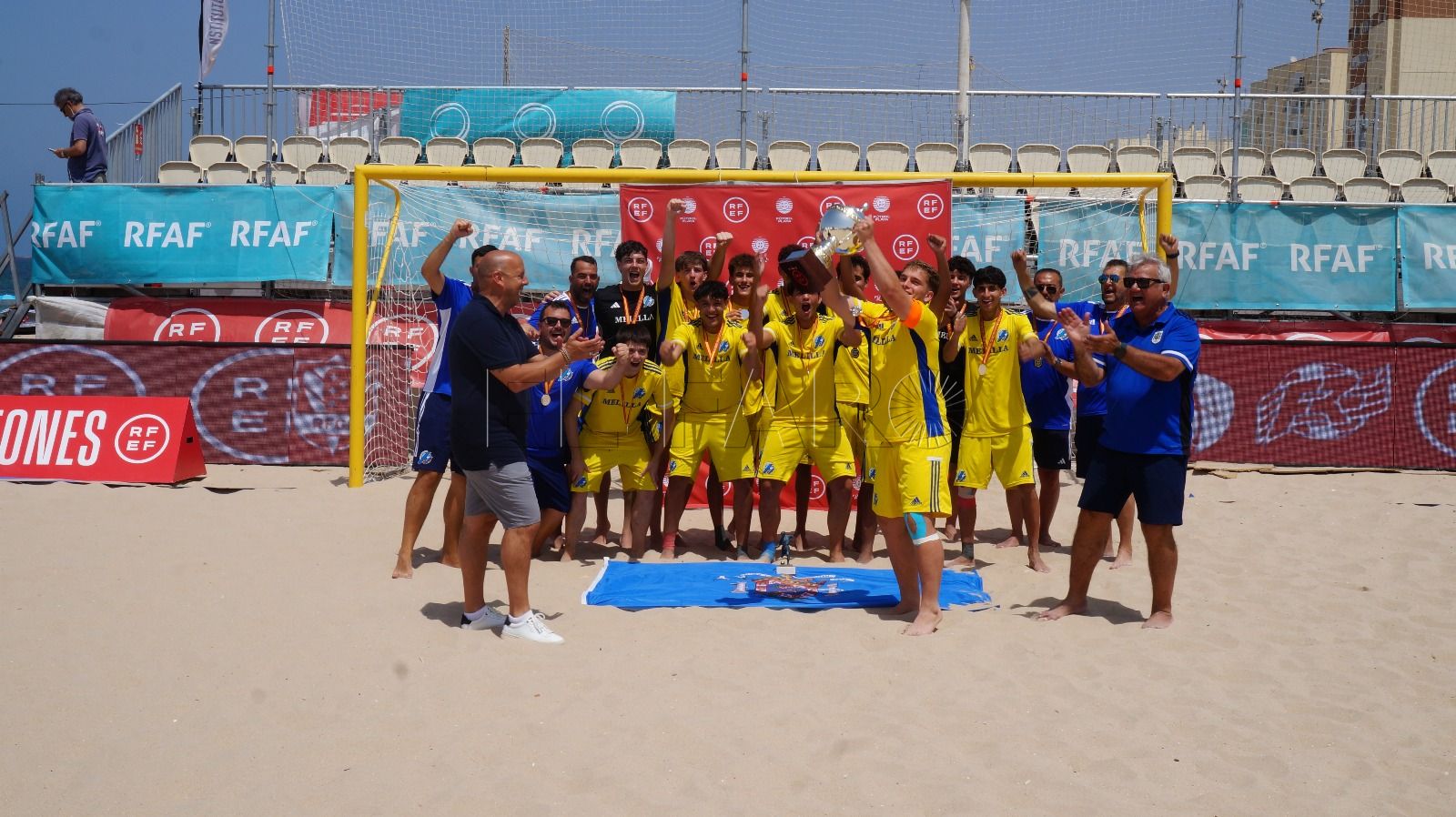 La selección juvenil de fútbol playa de la Real Federación Melillense de Fútbol ha cerrado una extraordinaria participación en el Campeonato de España por selecciones autonómicas, celebrado en la playa de la Victoria, en Cádiz, con un meritorio subcampeonato.