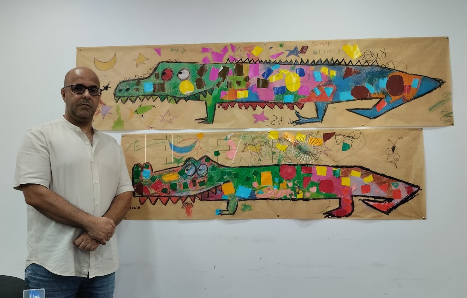 En esta actividad, los pequeños estuvieron trabajando en equipo para confeccionar un mural con una especie de cocodrilo sobre el que luego fueron pegando diversas formas geométricas.