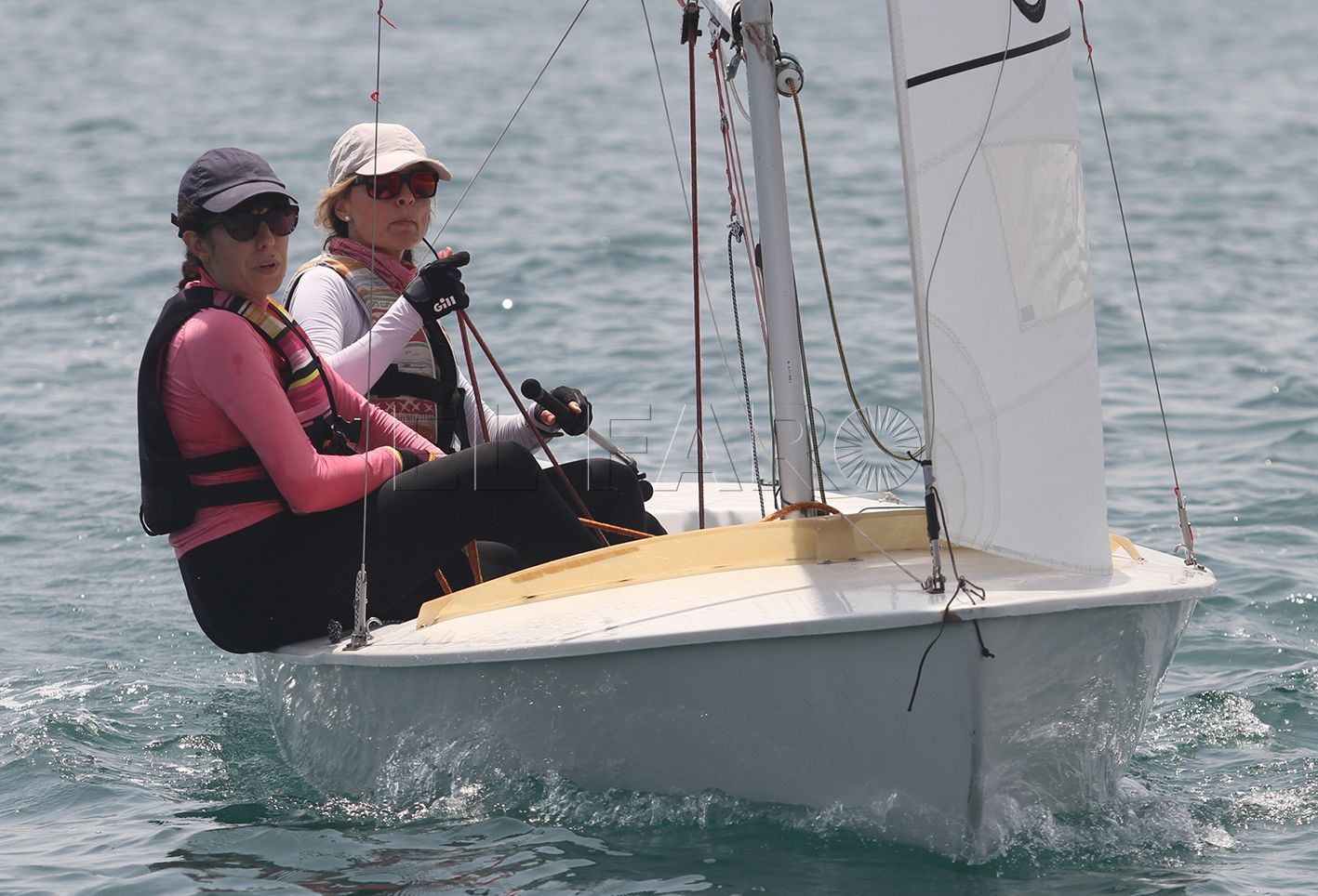Los vientos han vuelto a ser de poca intensidad, cinco nudos, pero en este caso la primera manga se ha realizado al 075º, mientras que la segunda se ha dado al 085º y el recorrido se ha tenido que acortar en sotavento, tras completarse sólo dos tramos, ante el menguante viento que obligó al Comité y balizadores actuar con prontitud.