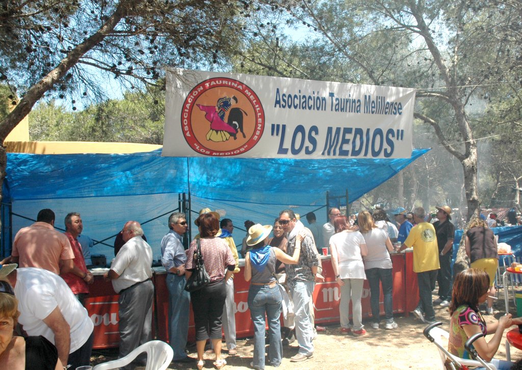 Ya sobre la una del mediodía, con todos los espacios previamente repartidos por la Comisión de Festejos de la Ciudad Autónoma y las barras prestas a servir cerveza, jumilla y vino de verano, comenzó un jolgorio en el que no faltaron los clásicos de siempre, caso del Coro del Cautivo y Virgen de la Victoria, los partidos políticos (PP y PSOE) o las muchas peñas y asociaciones que comparten sitio también con particulares que, en familia, se suman año tras año a la fiesta.