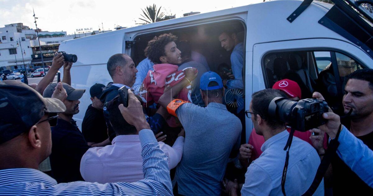 Rabat (Morocco), 29/09/2025.- Police detain people during a demonstration in Rabat, Morocco 29 September 2025. The rally organized by the Voice of Moroccan Youth demanded social justice and better public health and education services. (Marruecos) EFE/EPA/JALAL MORCHIDI