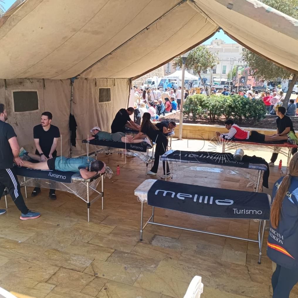 El fisioterapeuta comenta que “el trabajo preventivo es, principalmente, liberar cargas musculares y preparar la musculatura para los 50 kilómetros del sábado”. Una preparación que puede comenzar hasta 48 horas antes del pistoletazo de salida. Esta labor sale a coste cero para los participantes gracias al acuerdo con La Legión.