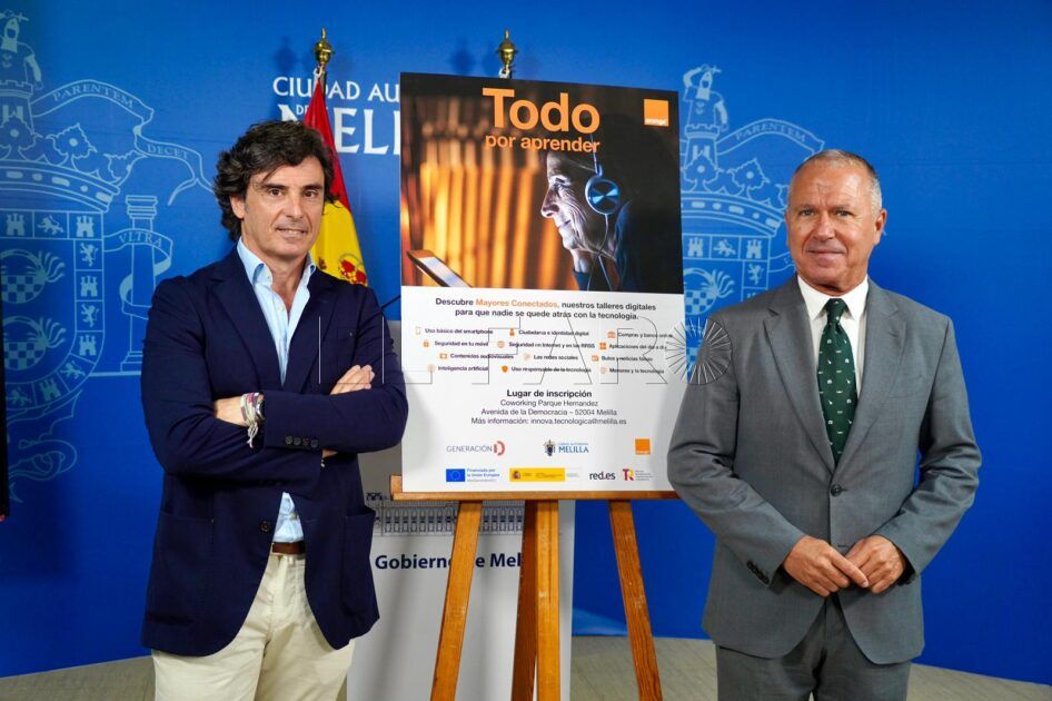 La Ciudad Autónoma de Melilla y la compañía Orange España han firmado un convenio de colaboración para impulsar la formación digital entre la población mayor de 60 años. El acuerdo permitirá la puesta en marcha de doce talleres gratuitos centrados en el uso de nuevas tecnologías, redes sociales, inteligencia artificial y seguridad en internet.