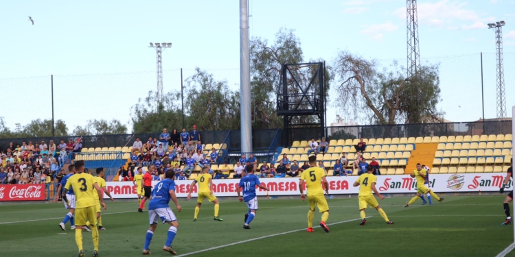 Los de Luís Miguel Carrión tenían las líneas muy juntas, complicándole las llegadas a los amarillos. Algunas subidas aisladas de Jilmar por la banda izquierda, ponían emoción sobre el terreno de juego para los melillenses. La mejor ocasión para el conjunto de la Ciudad Autónoma de Melilla llegó pasada la veintena del encuentro, cuando Ruano probó fortuna desde el vértice izquierdo del área, pero el balón acabó saliendo la escuadra amarilla.