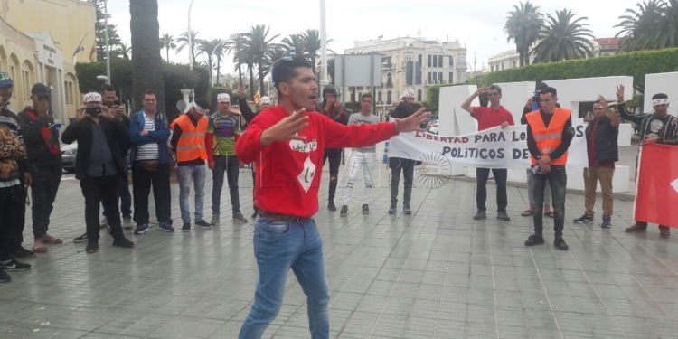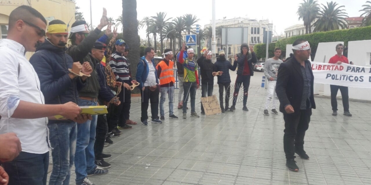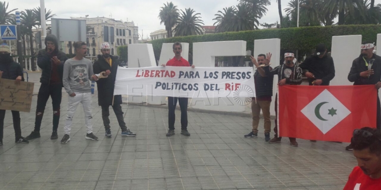 Decenas de activistas rifeños, internos en el Centro Estacional Temporal de Inmigrantes (CETI), se concentraron ayer en Plaza de España para pedir la libertad de los presos políticos en Marruecos por exigir mejoras sociales en la región.
