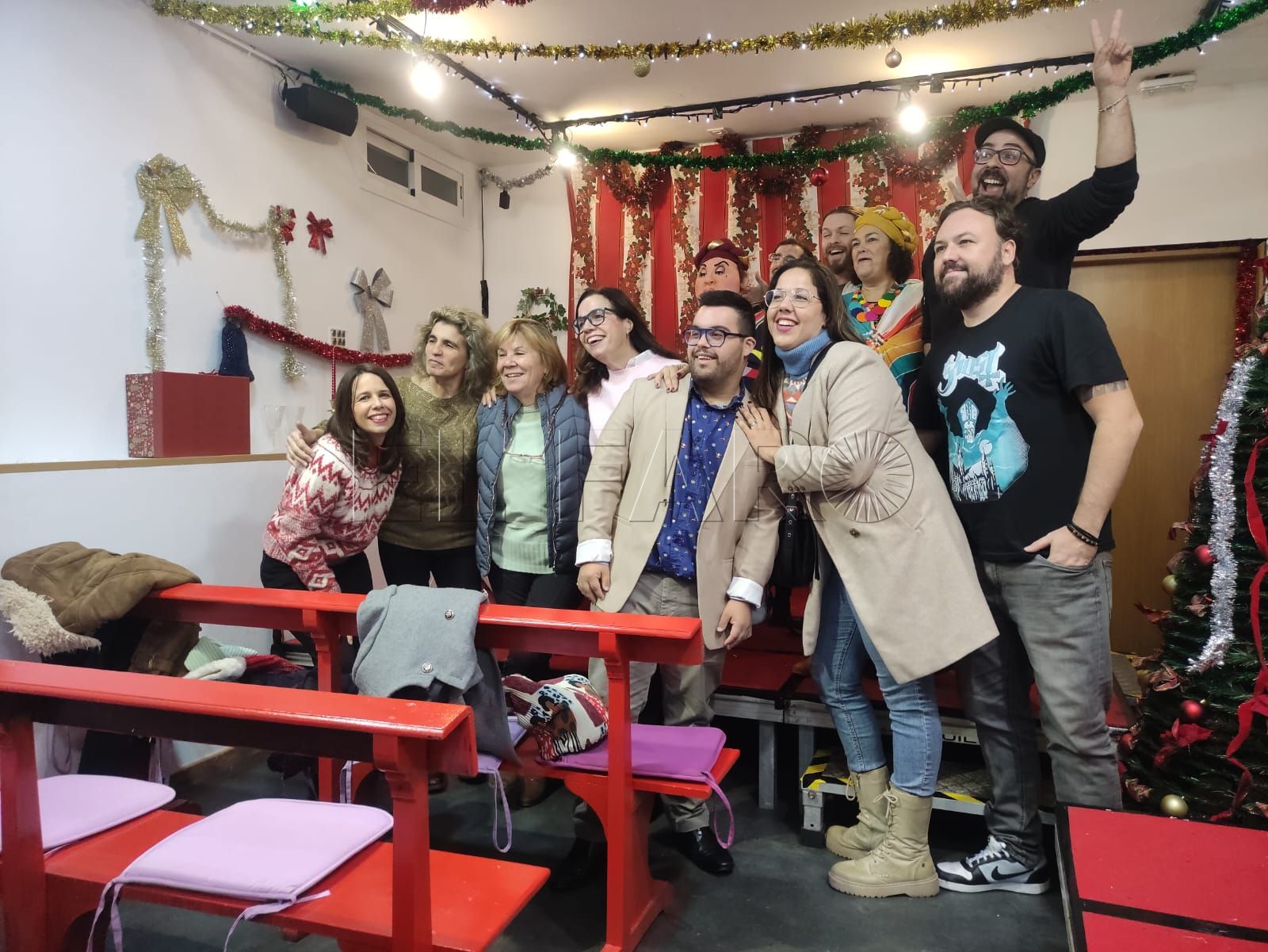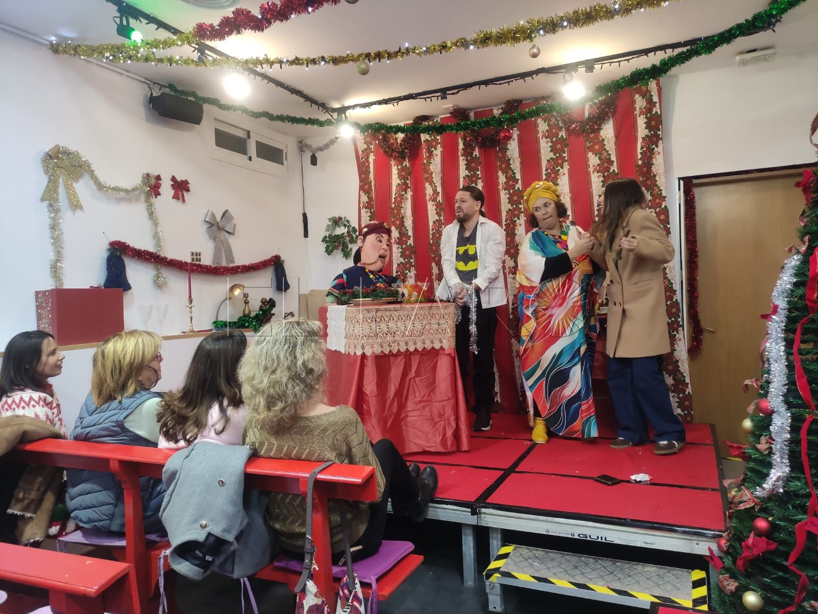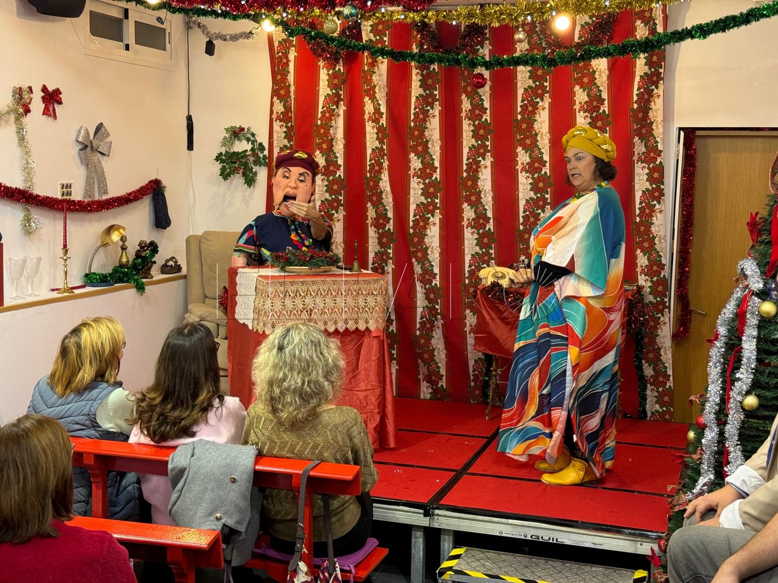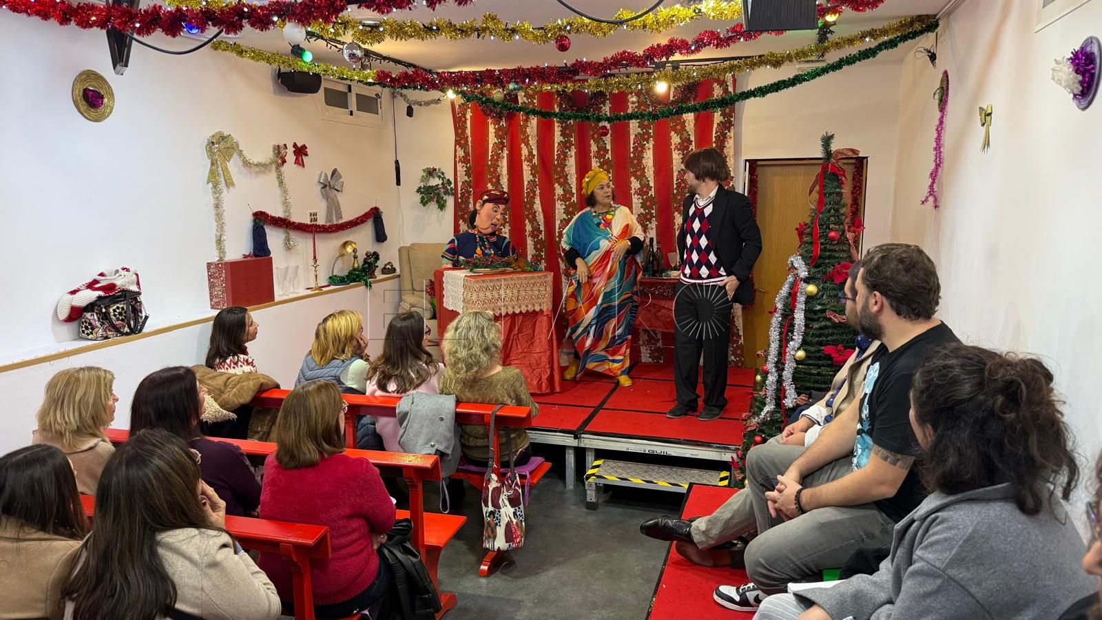 “Cita doble en Nochevieja” es una obra pensada para el público adulto, una apuesta por el teatro de títeres junto a actores y actrices en escena, que amplifica la trayectoria de Álvaro Sola, conocido en Melilla por su trabajo en el teatro infantil y su actividad con marionetas. Esta vez, el salto hacia un formato para adultos no renuncia a la esencia artesanal que define su marca personal, sino que la adapta a una historia cargada de humor ácido, ritmo narrativo y un uso escénico adaptado perfectamente al espacio y los recursos que forman parte de la escenografía. “Llevaba tiempo queriendo hacer algo así, con marionetas para adultos. Se me vino a la cabeza la película ‘¿Qué fue de Baby Jane?’, con esas hermanas encerradas en casa, y pensé en hacer algo parecido, pero desde la comedia, con una primera cita en Nochevieja. Y así surgió esta obra”, cuenta Sola, que no solo firma la dirección y el guión, sino que además presta su voz a uno de los personajes centrales.