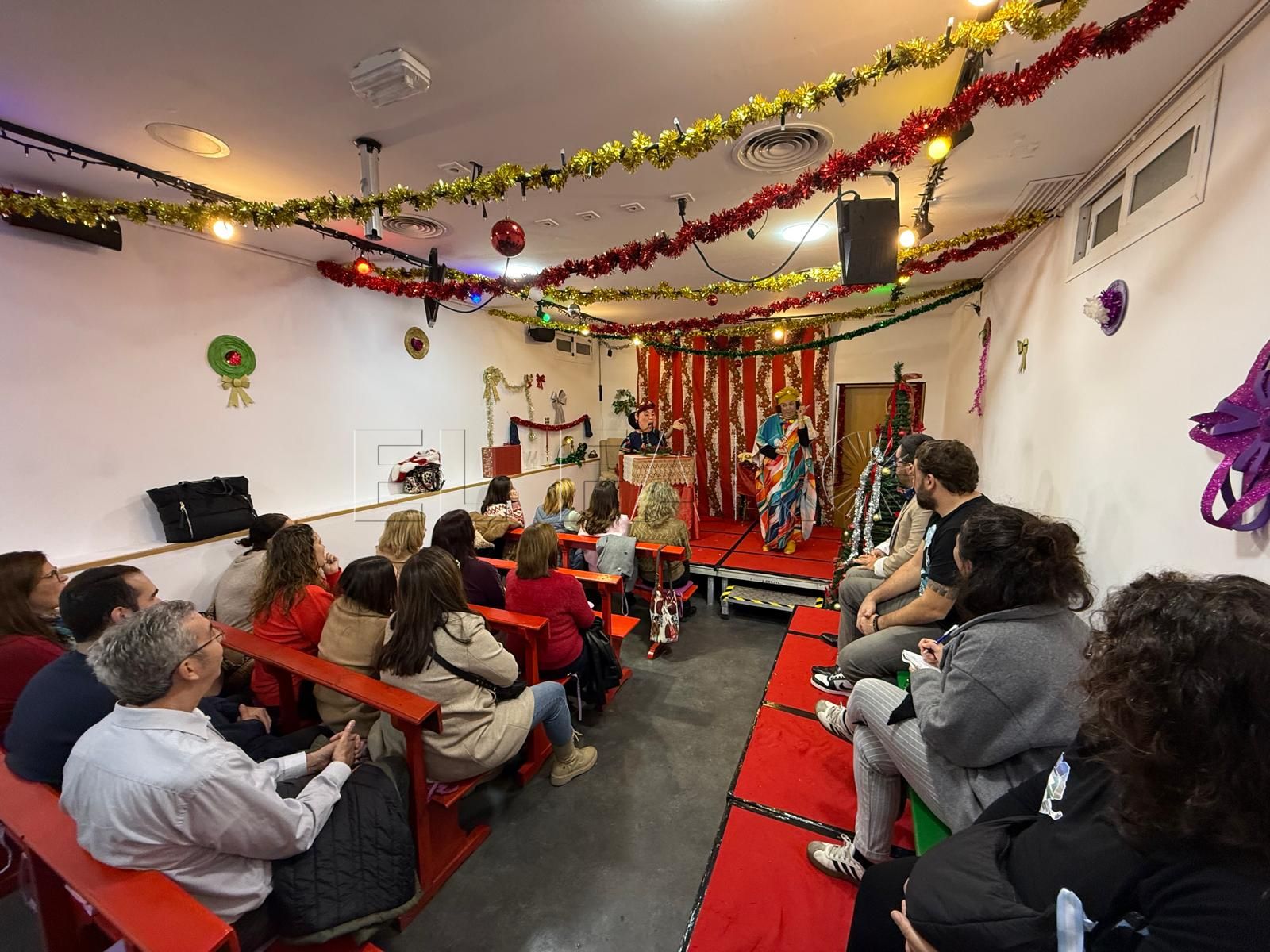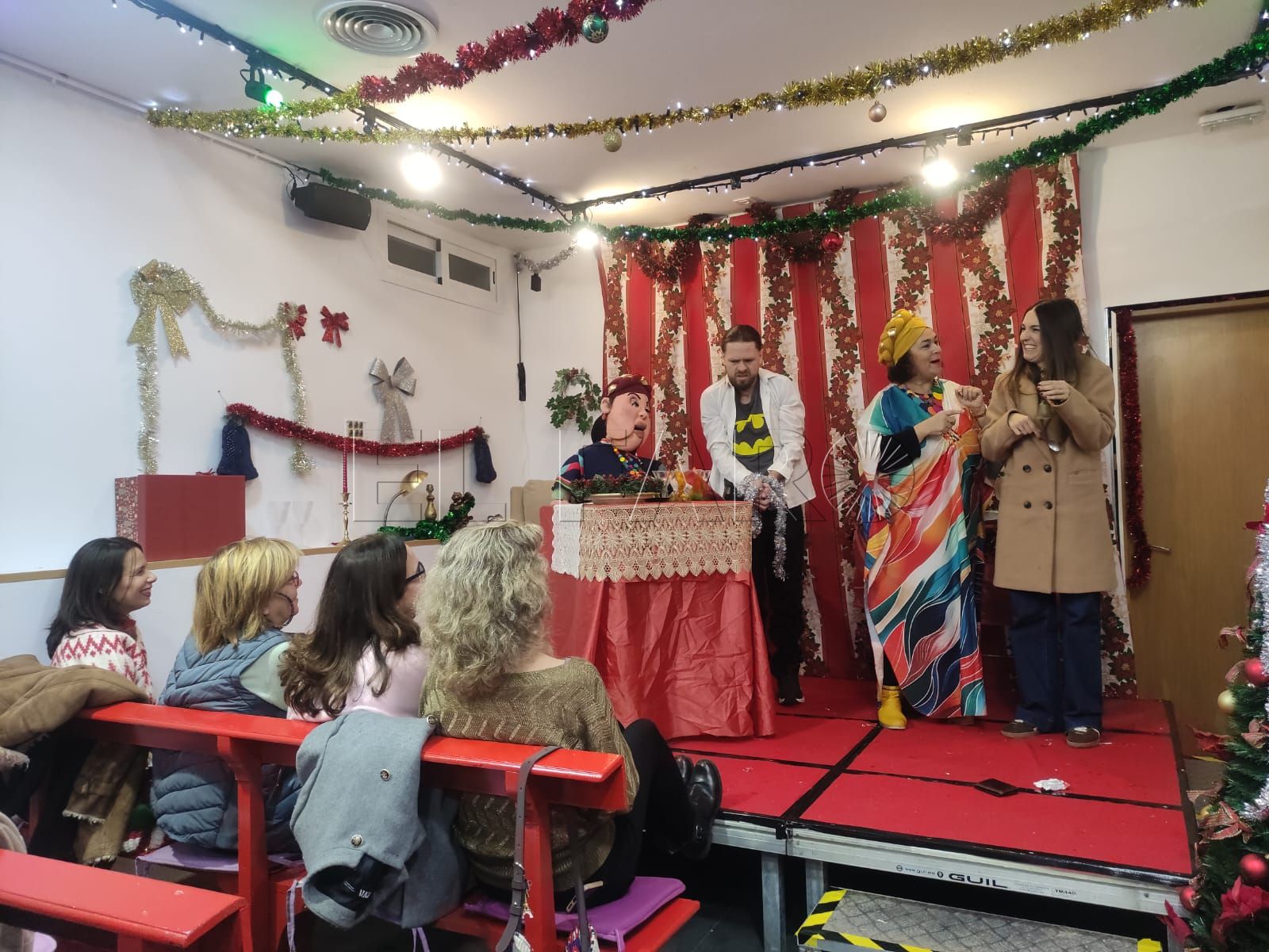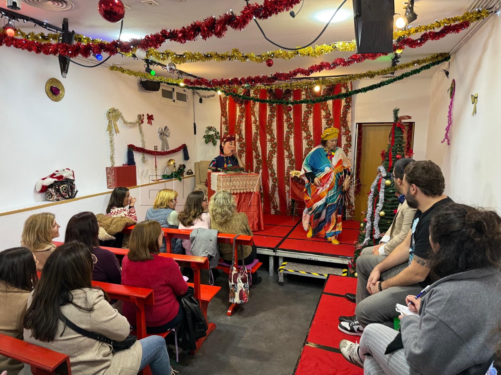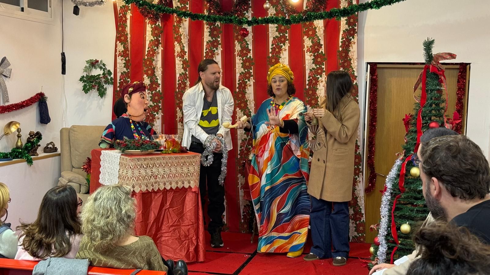 “Cita doble en Nochevieja” es una obra pensada para el público adulto, una apuesta por el teatro de títeres junto a actores y actrices en escena, que amplifica la trayectoria de Álvaro Sola, conocido en Melilla por su trabajo en el teatro infantil y su actividad con marionetas. Esta vez, el salto hacia un formato para adultos no renuncia a la esencia artesanal que define su marca personal, sino que la adapta a una historia cargada de humor ácido, ritmo narrativo y un uso escénico adaptado perfectamente al espacio y los recursos que forman parte de la escenografía. “Llevaba tiempo queriendo hacer algo así, con marionetas para adultos. Se me vino a la cabeza la película ‘¿Qué fue de Baby Jane?’, con esas hermanas encerradas en casa, y pensé en hacer algo parecido, pero desde la comedia, con una primera cita en Nochevieja. Y así surgió esta obra”, cuenta Sola, que no solo firma la dirección y el guión, sino que además presta su voz a uno de los personajes centrales.