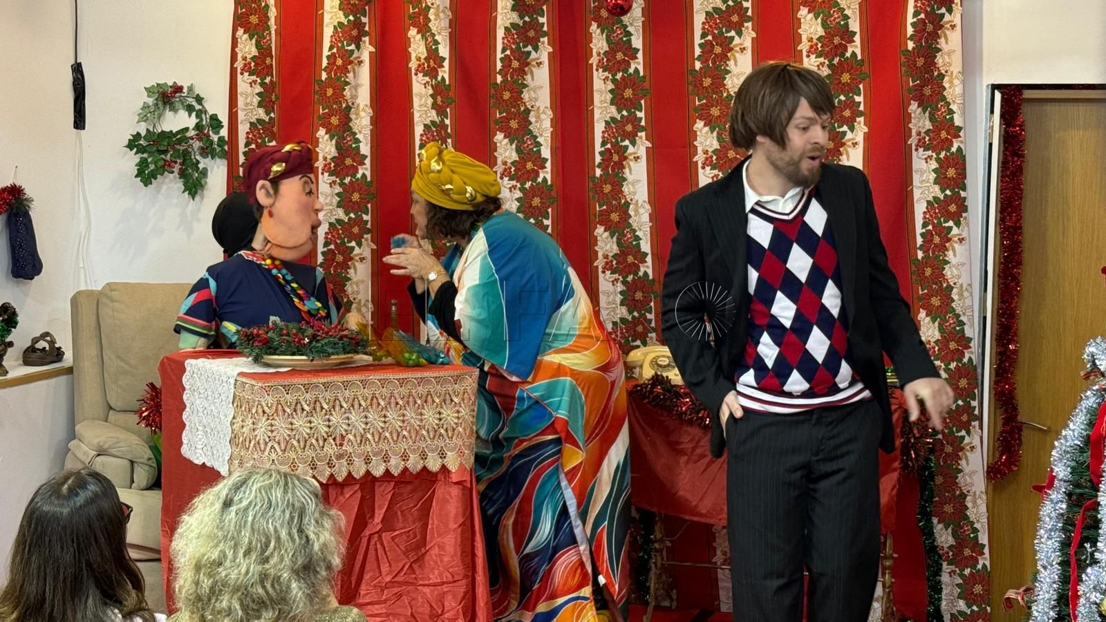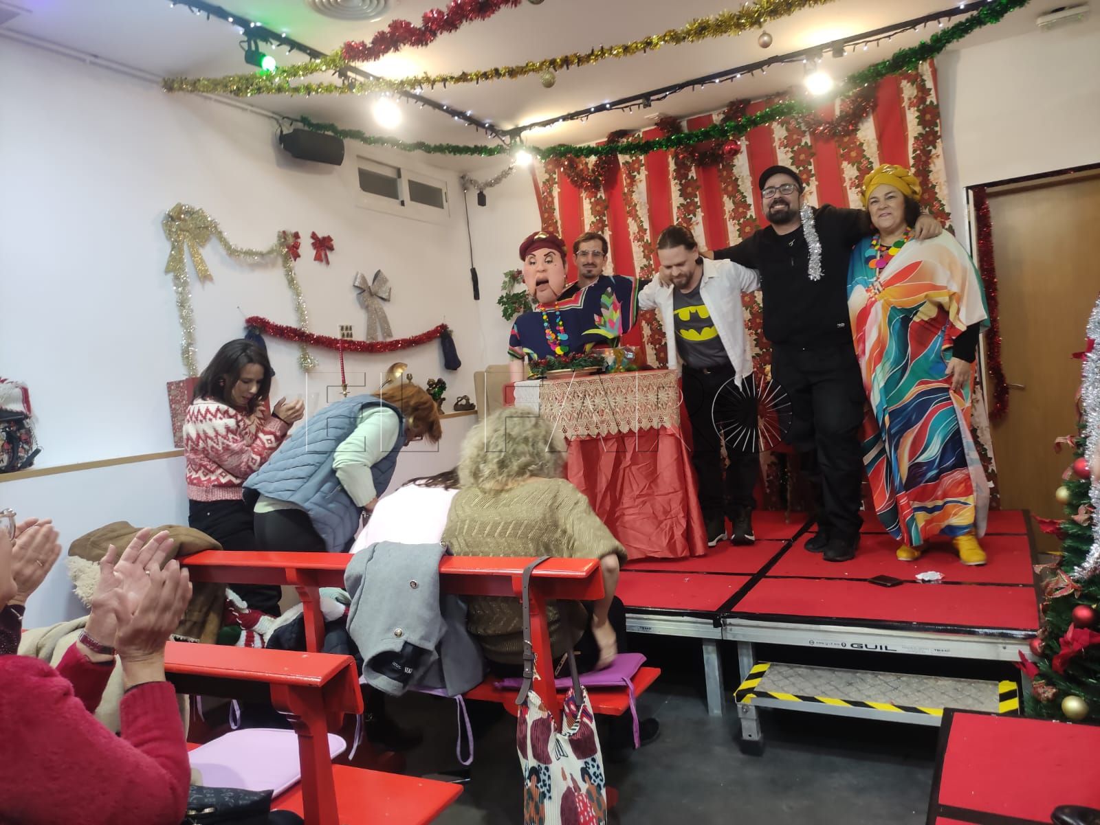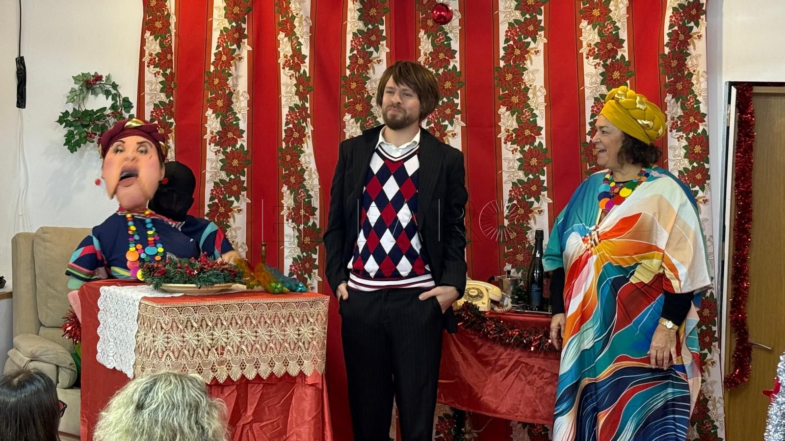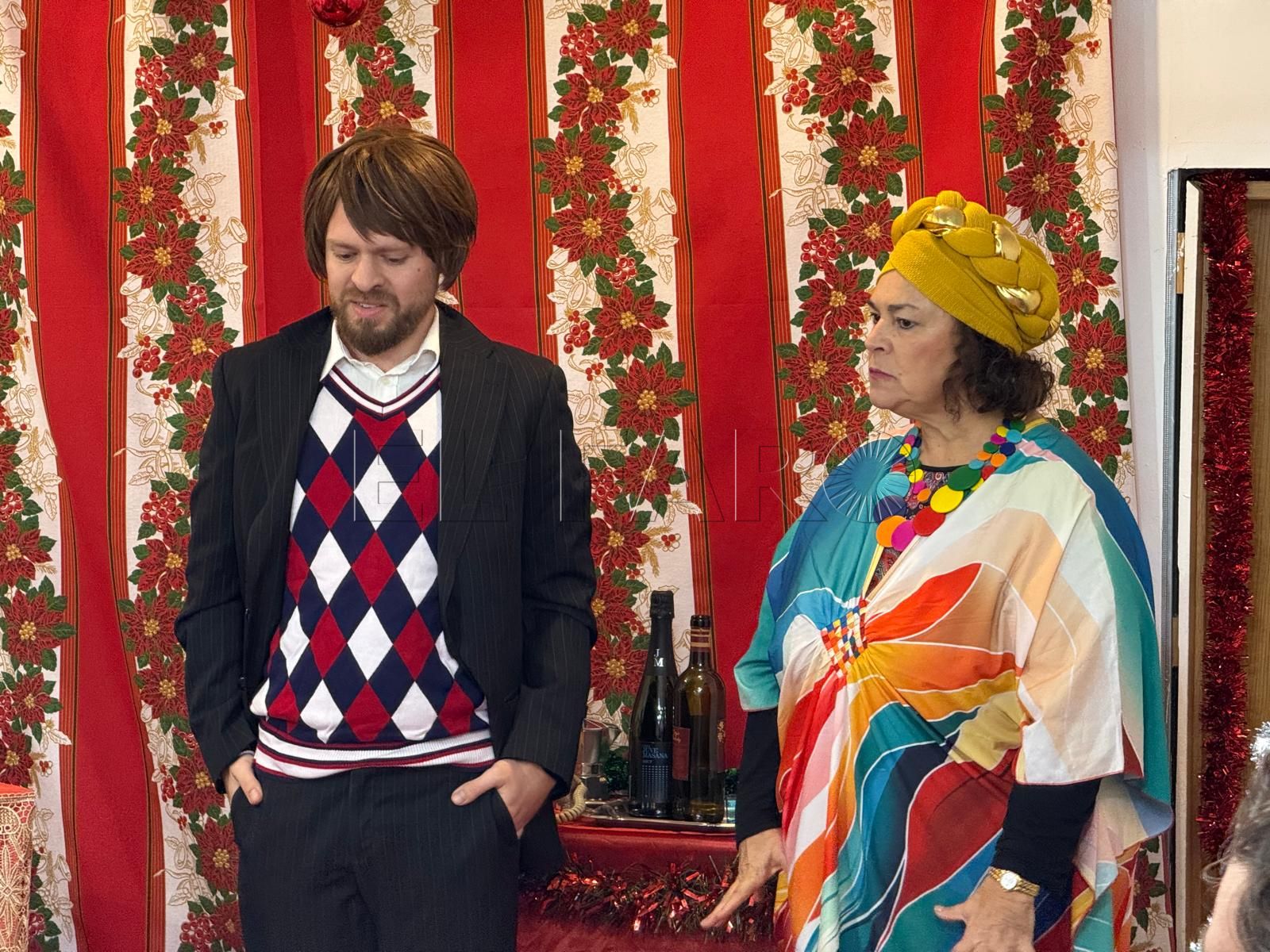 “Cita doble en Nochevieja” es una obra pensada para el público adulto, una apuesta por el teatro de títeres junto a actores y actrices en escena, que amplifica la trayectoria de Álvaro Sola, conocido en Melilla por su trabajo en el teatro infantil y su actividad con marionetas. Esta vez, el salto hacia un formato para adultos no renuncia a la esencia artesanal que define su marca personal, sino que la adapta a una historia cargada de humor ácido, ritmo narrativo y un uso escénico adaptado perfectamente al espacio y los recursos que forman parte de la escenografía. “Llevaba tiempo queriendo hacer algo así, con marionetas para adultos. Se me vino a la cabeza la película ‘¿Qué fue de Baby Jane?’, con esas hermanas encerradas en casa, y pensé en hacer algo parecido, pero desde la comedia, con una primera cita en Nochevieja. Y así surgió esta obra”, cuenta Sola, que no solo firma la dirección y el guión, sino que además presta su voz a uno de los personajes centrales.