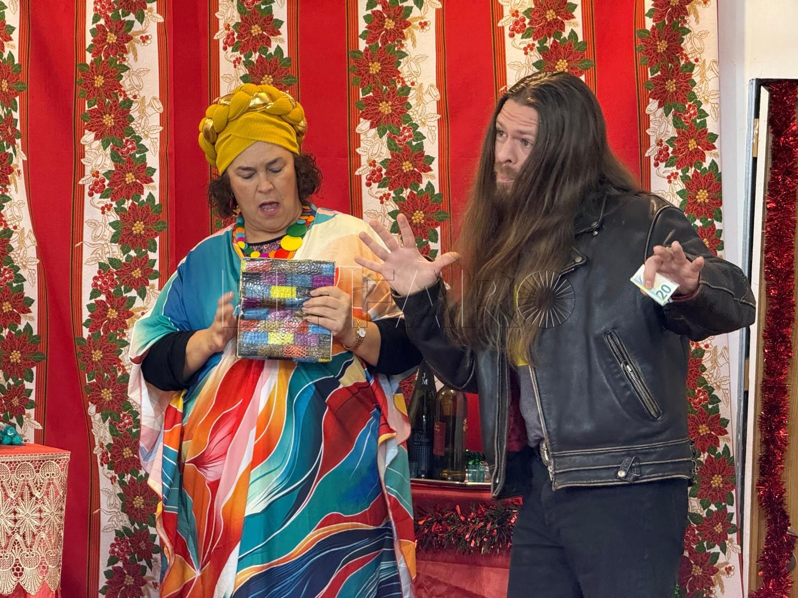 Más allá del texto, lo que convierte a esta obra en una experiencia diferente es la forma en que se involucra al público. Desde los primeros minutos, los asistentes son parte de la historia. Aplauden, corean frases, cantan, siendo parte imprescindible del desarrollo de la obra. En el guión aparecen nombres de personajes famosos, referencias a lugares de Melilla y momentos que solo se entienden si uno ha vivido aquí. Es una comedia local en el mejor sentido de la palabra, donde el contexto importa, y donde el humor se alimenta del presente, del aquí y ahora de cada función.