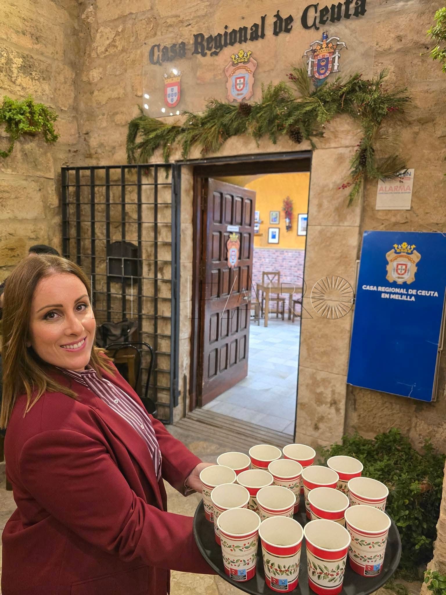La Casa regional de Ceuta en Melilla celebró la llegada de la Navidad con un acto muy especial en el que proclamó a Rocío Matesanz Ruiz como "Caballa de Oro 2025", su máxima distinción anual. La entrega del reconocimiento se realizó en un ambiente festivo y acogedor en la sede de la entidad, ubicada en el emblemático Callejón de San Juan, que fue decorado con esmero para la ocasión, con luces navideñas, adornos tradicionales y un bidón con troncos de olivo y encina que aportaban calidez al entorno.