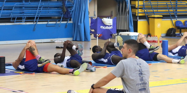 Por las mañanas prima el trabajo físico y de técnica individual. Así a las 10:00 horas, y tal y como ocurriera en el día de ayer, los jugadores se ha dividido en dos grupos para comenzar a trabajar. Si bien en esta ocasión todo el trabajo se realizado en la cancha de juego del pabellón Javier Imbroda. Los exteriores han comenzado realizando un trabajo físico con el preparador físico Rafa Vaz y con la colaboración de Sergio Miras. Mientras tanto, los interiores han trabajado tecnificación con el primer entrenador Alejandro Alcoba y su segundo Jordi Ribas. Posteriormente ambos grupos intercambiaron lugar de trabajo, para acabar el entrenamiento con unos estiramientos.