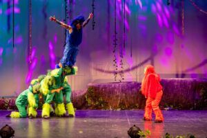 El trabajo físico del elenco es otro de los elementos fundamentales del éxito del montaje. Las coreografías, diseñadas por Edu Llorens, combinan danza contemporánea con movimientos inspirados en el mundo animal, aportando una dimensión física potente a la narración. Cada escena de acción o encuentro en la selva se transforma así en una coreografía visualmente impactante.