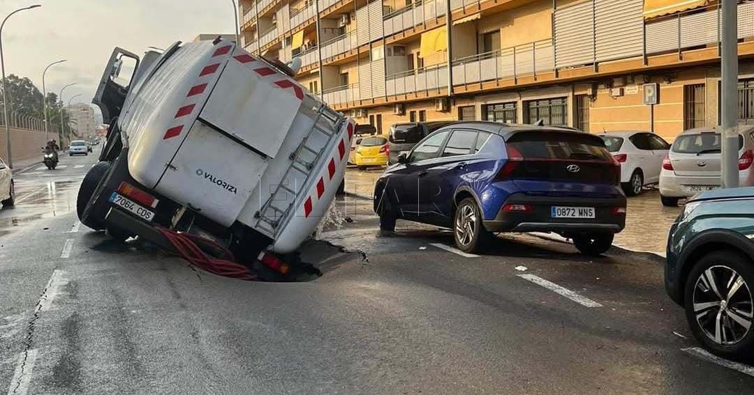 Los técnicos municipales continúan investigando las causas del hundimiento de la calzada en la carretera Alfonso XIII, uno de los principales accesos de la ciudad, que este lunes provocó el accidente de un camión regadera perteneciente a la empresa Valoriza, según ha asegurado este martes el consejero de Medio Ambiente y Naturaleza, Daniel Ventura.