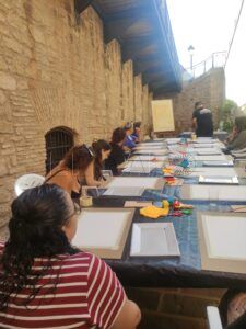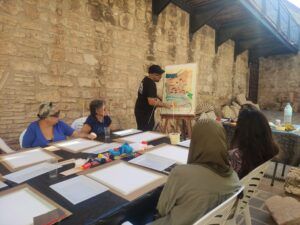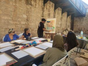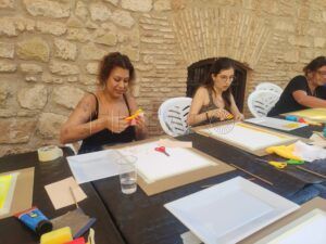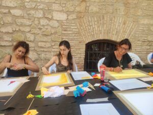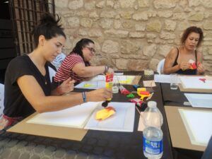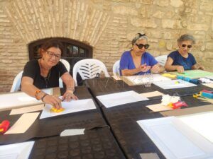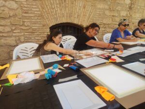 El Museo Etnográfico de Melilla presentaba una mañana con unas características diferentes. Esta vez, distintas personas de la ciudad, sobre todo mujeres de diferentes edades, se acercaban a participar en un encuentro creativo, donde la libertad plástica se entreveía en una mesa alargada repleta de utensilios variados.