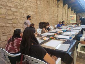 Isabel Herrera está de paso por la ciudad y ha querido aprovechar para animarse a participar en este taller, aunque ya había realizado anteriormente alguno de arte abstracto. A ella le llegó la información por WhatsApp, mientras que Isabel, una joven estudiante de la Escuela de Artes Miguel Marmolejo, se enteró por Instagram, dándose la oportunidad de "probar otra cosa", sostiene la joven Isabel.