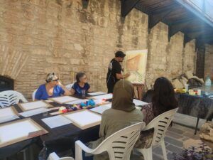De las 14 plazas disponibles, las cuales enseguida quedaron cubiertas tras el anuncio, 11 personas han acudido esta mañana a dedicar tiempo a participar en una actividad colectiva y creativa. Fatdua ha llegado principalmente motivada por su amiga y, aunque es su primera vez en un taller de artes plásticas, sostiene que le atrae el hecho de "poder compartir tiempo", así como desenvolverse en una actividad artística que le puede aportar conocimiento sobre "algo que no sabías que te gustaba", sostiene la joven. Por su parte, otra de las personas que se han acercado durante la mañana, Lubna, sostiene que a ella le gusta dibujar y le ilusionaba "poder hacer algo diferente", siendo la primera vez que participa en este tipo de encuentros.