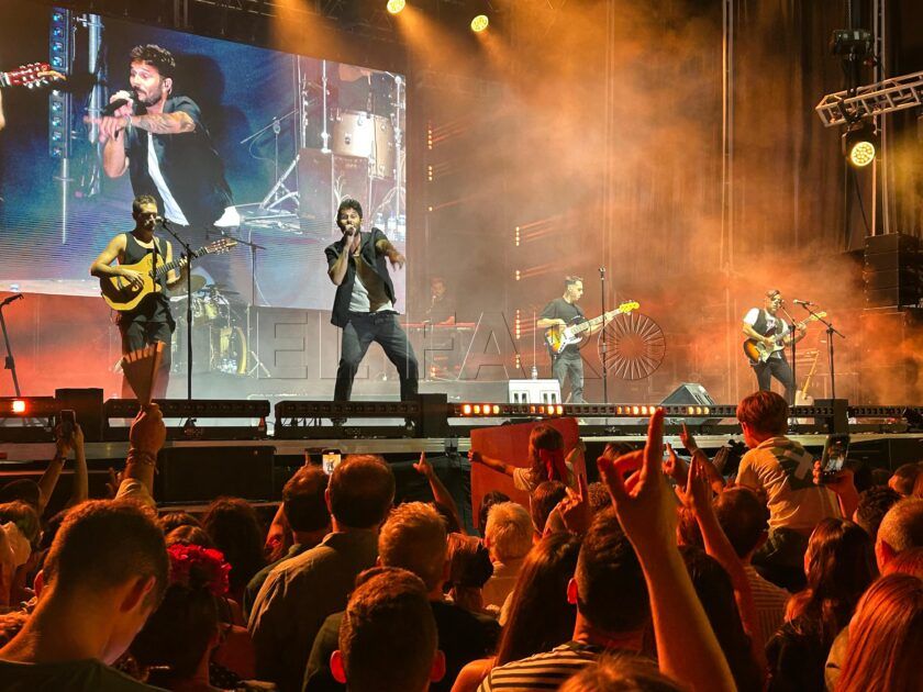 Las canciones se sucedían como capítulos de una historia que todos vivían al mismo tiempo. Mi Escondite, Laberinto… pero sobre todo Me Prometo, que resonó con una fuerza que hizo vibrar hasta el último rincón de la Caseta Oficial. Cada acorde era un suspiro, un latido compartido, un instante que nadie quería dejar escapar.