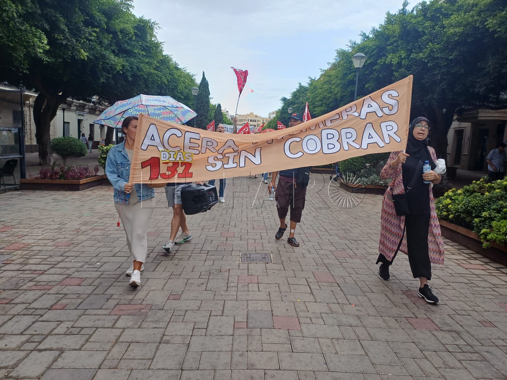 Los trabajadores mostraron su rechazo total a la situación de impago que vienen sufriendo estos últimos meses. Estos transmitieron su descontento con cánticos continuos como "Imbroda, escucha, ludotecas en lucha", "queremos cobrar" o "el banco no espera y menos la nevera".