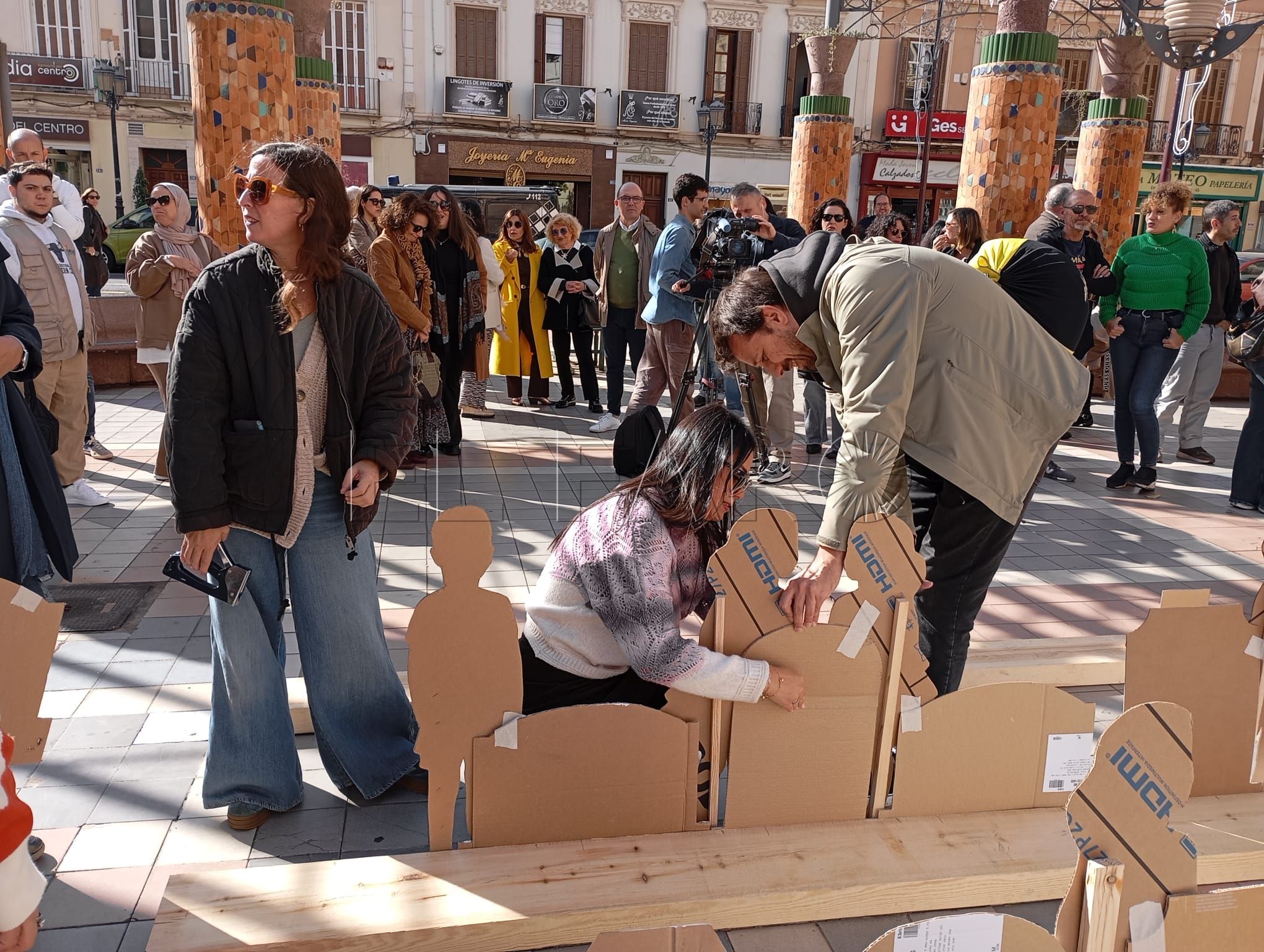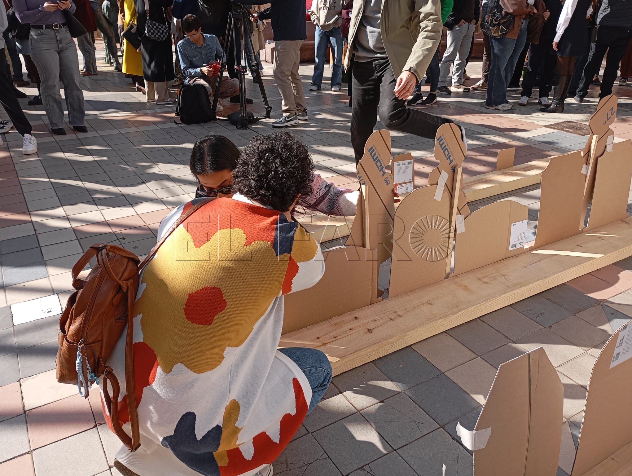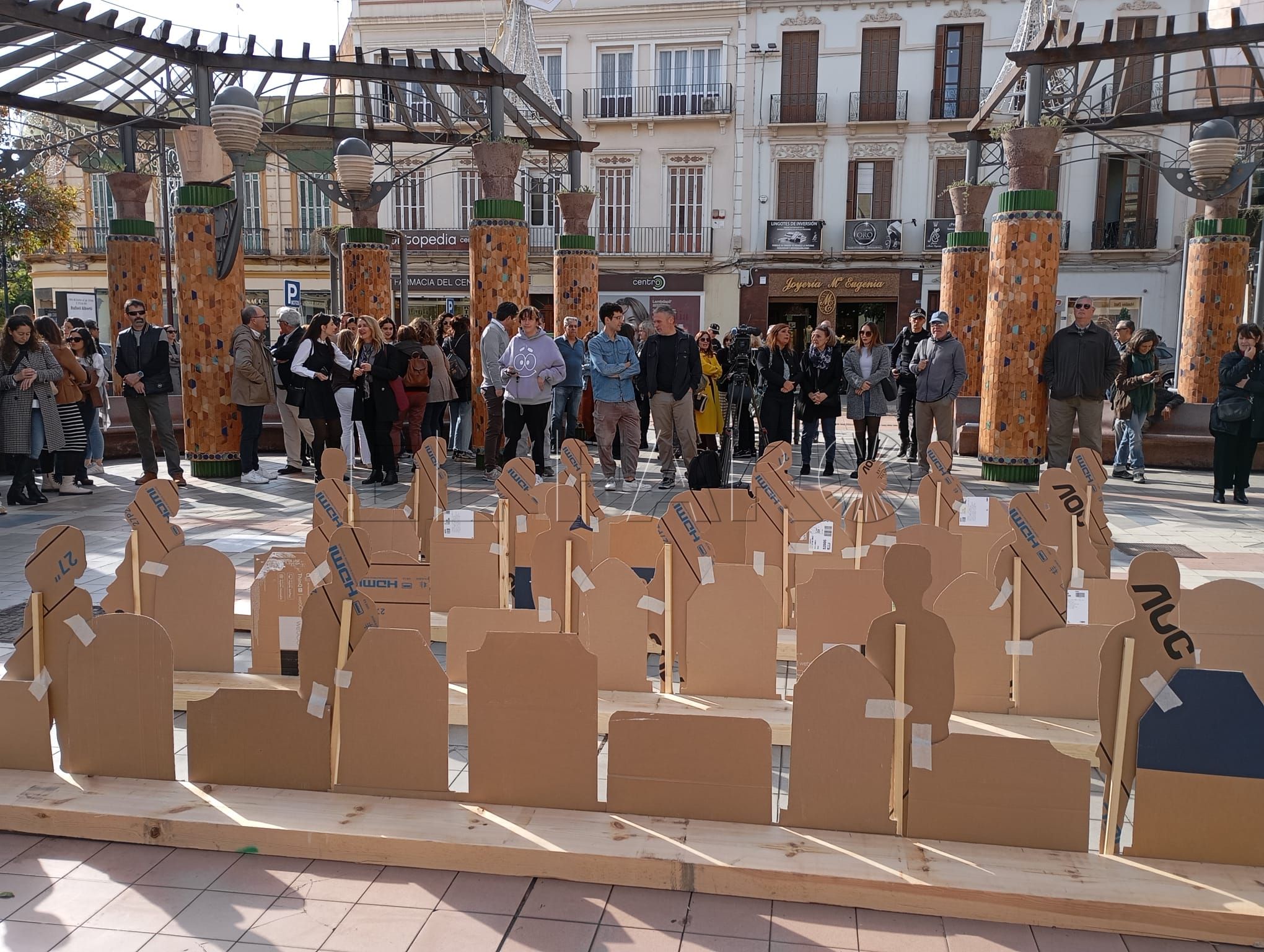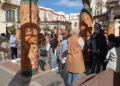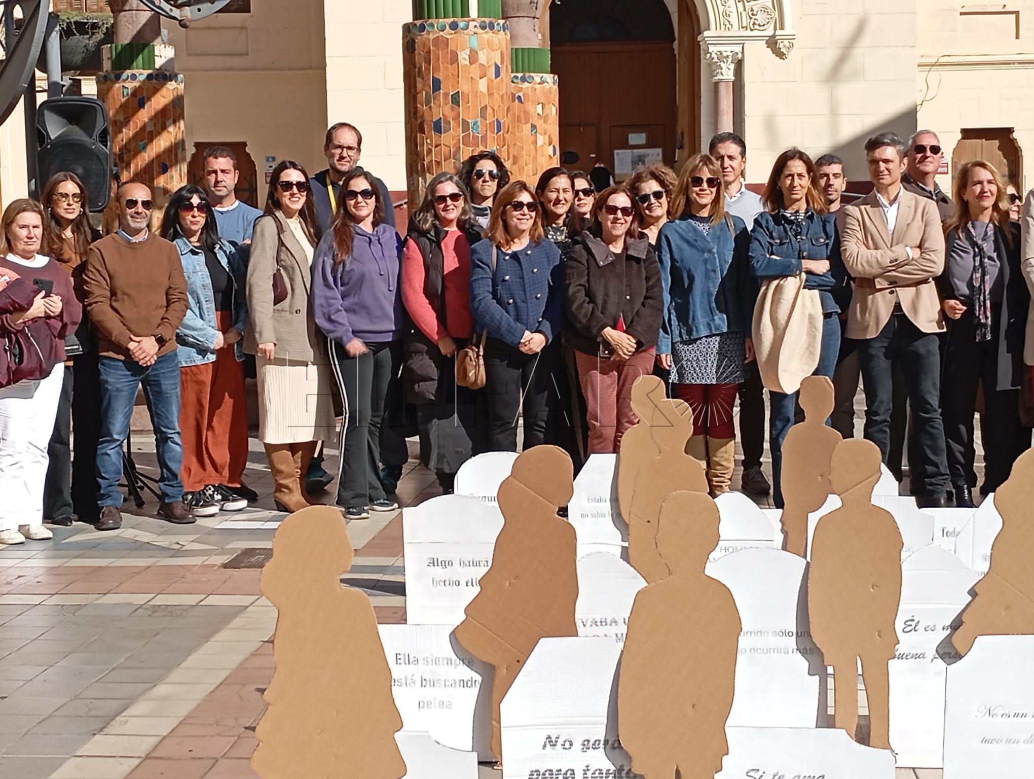 El acto ha contado con representaciones de figuras en relieve que han llenado la plaza, sobre las cuales podían leerse frases en las que se escudan los comportamientos machistas y la justificación de las violencias contra las mujeres y los niños.