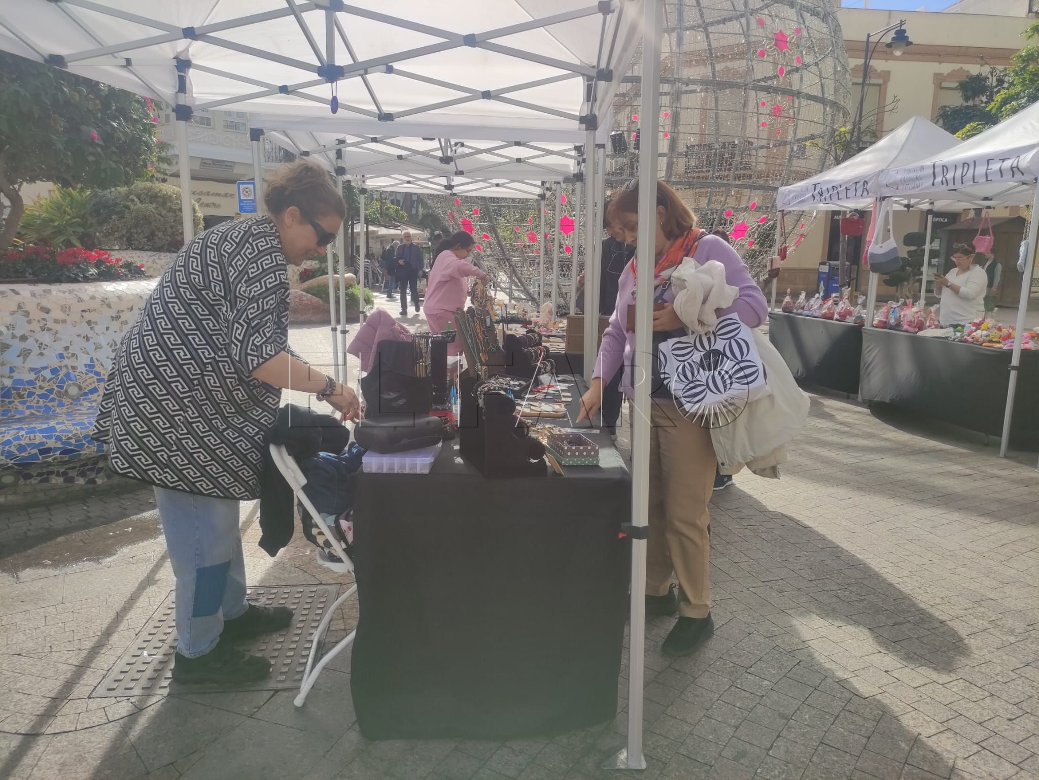 La Plaza Héroes de España vuelve a integrar este domingo vida, color y talento local gracias a la presencia de la Asociación de Artesanas Tripleta. Como ya es tradición en estas fechas, las integrantes de este colectivo se instalaron el sábado 29 y el domingo 30 de noviembre con sus puestos de productos artesanales y, como valor añadido, ofrecieron de nuevo un taller infantil gratuito que acercó el trabajo manual a los más pequeños.
