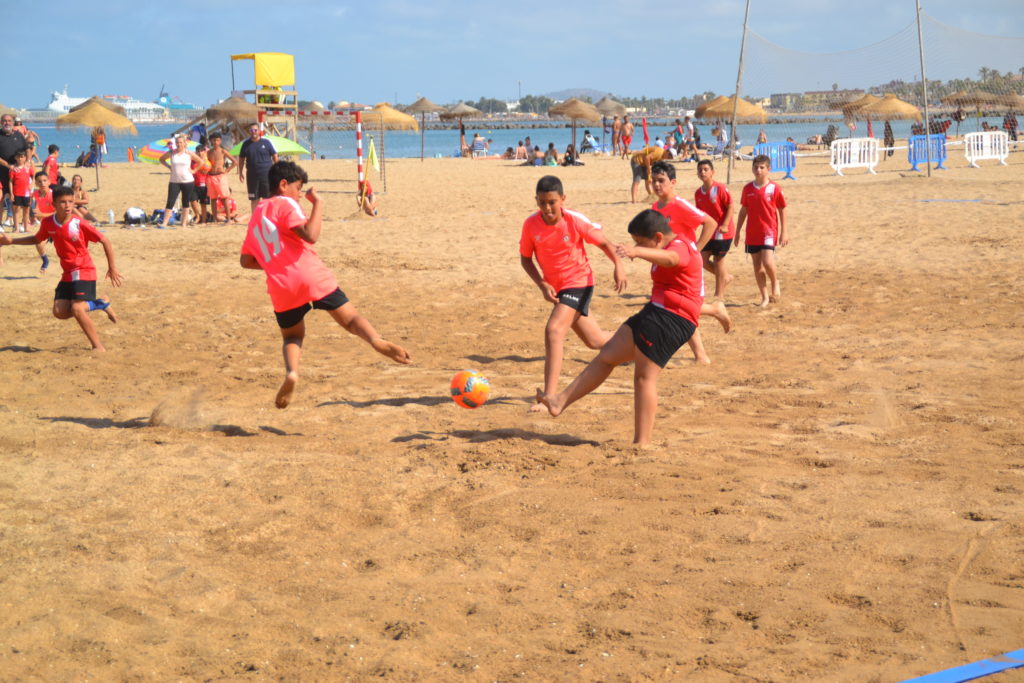 La competición de fútbol playa continúa a buen ritmo en nuestra ciudad y ya están definidos los finalistas de la categoría cadete y juvenil, mientras que aún restan por disputarse dos jornadas de la liga regular tanto en la categoría infantil como en la alevín.
