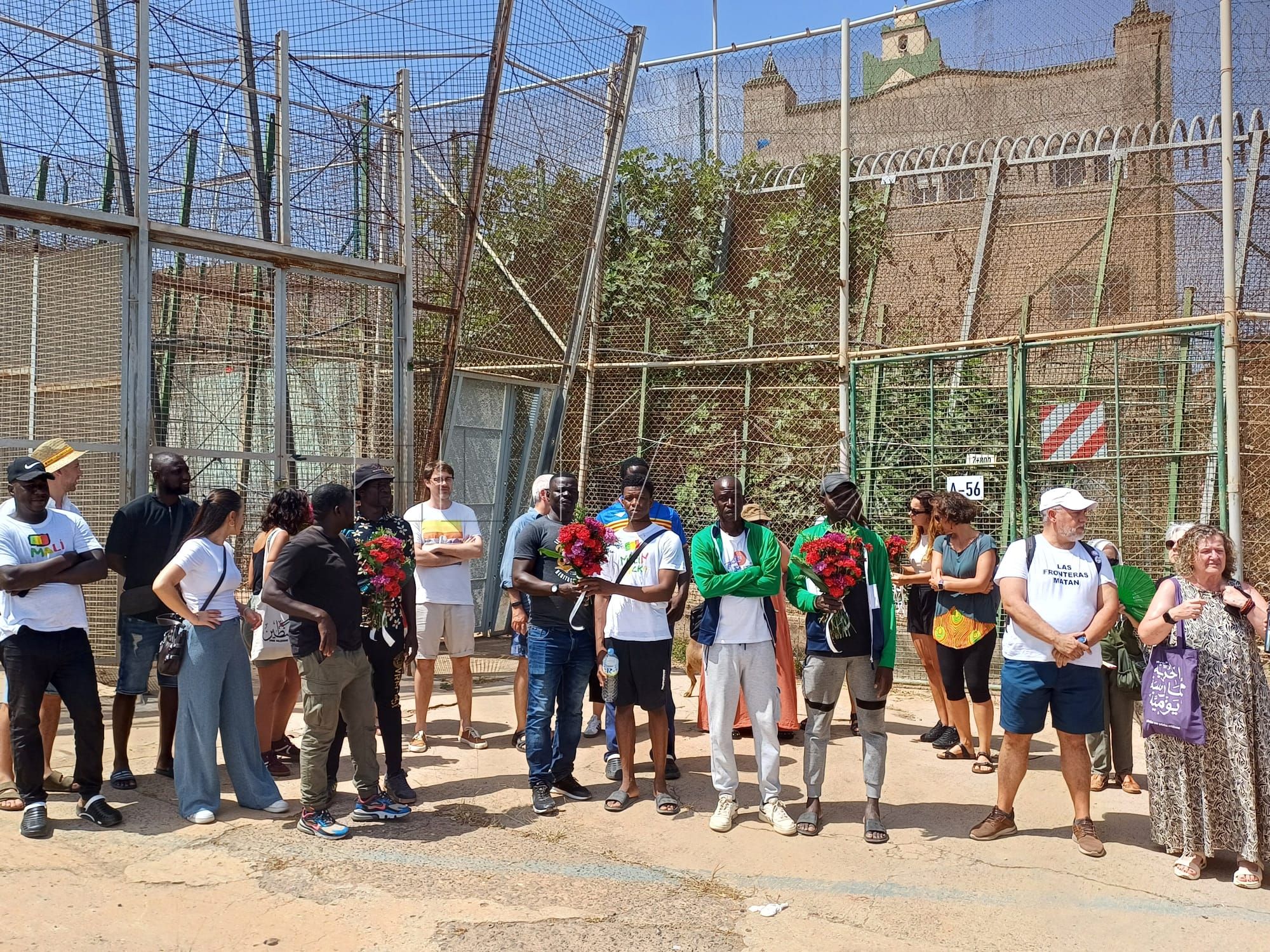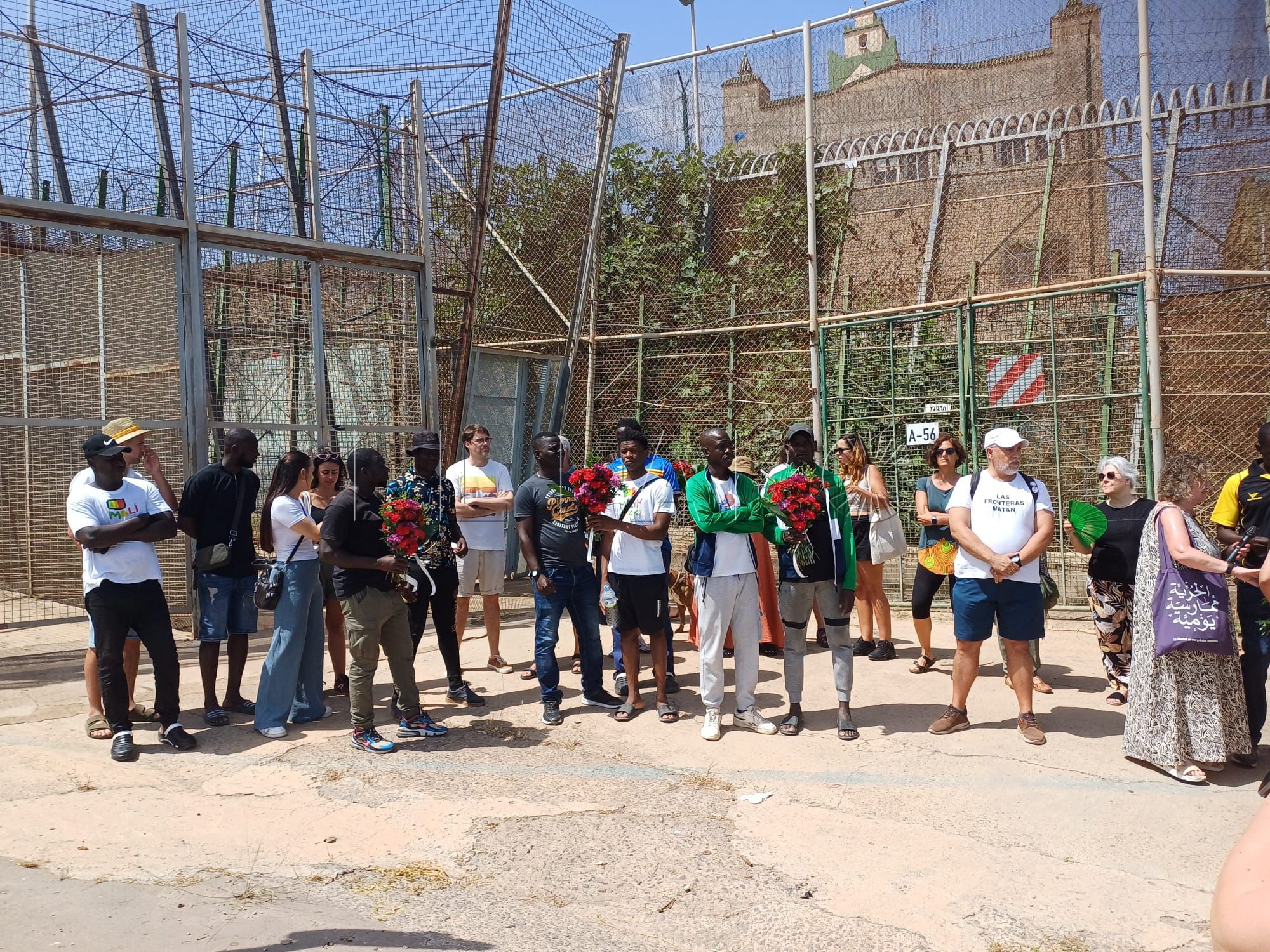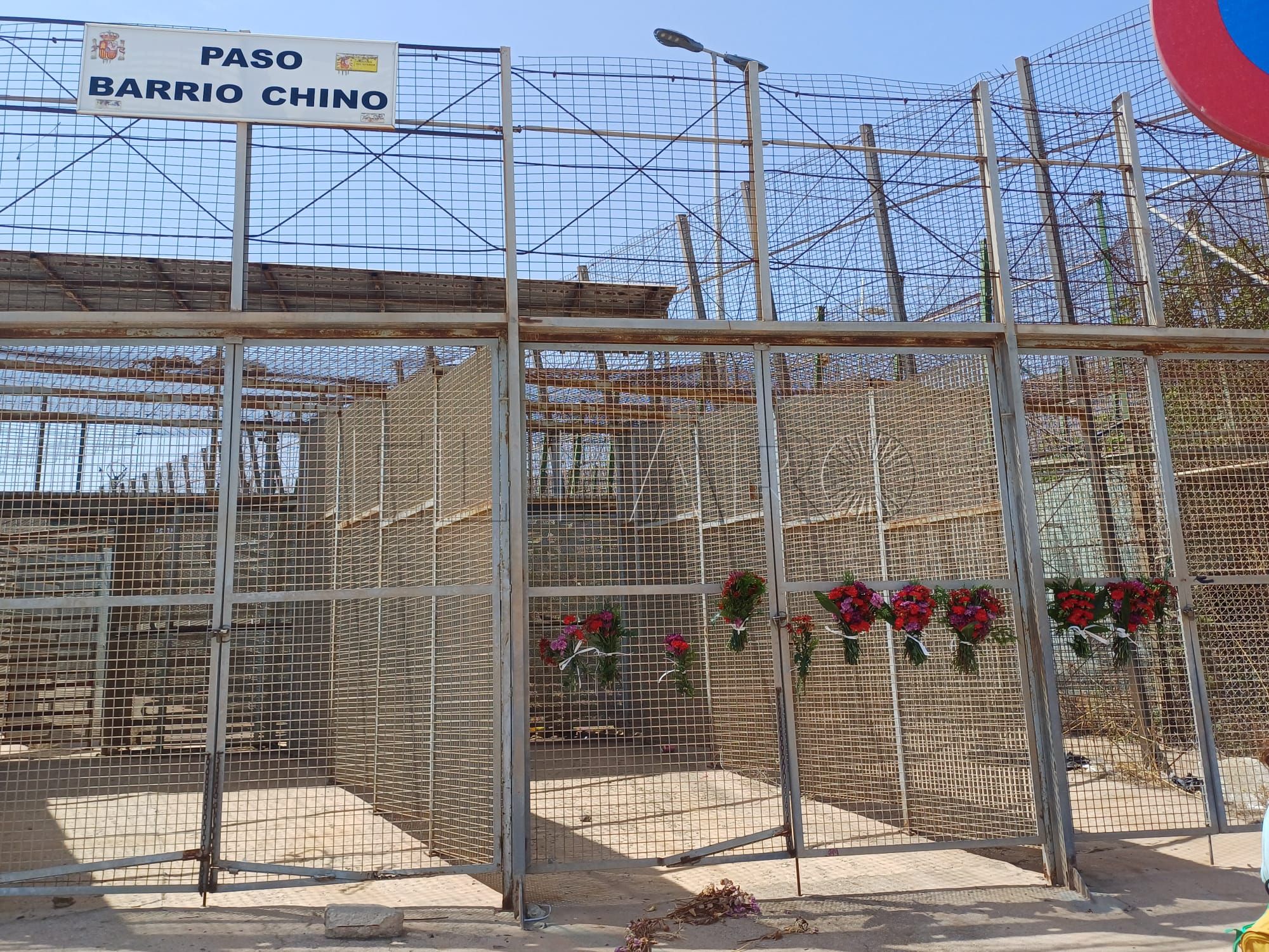 ONGs melillenses como Mec de la Rue (MdLR) o Geum Doudou han participado una ofrenda floral en el paso fronterizo, como por otra parte, se viene desarrollando desde que ocurrió la masacre en el lado marroquí de la frontera.