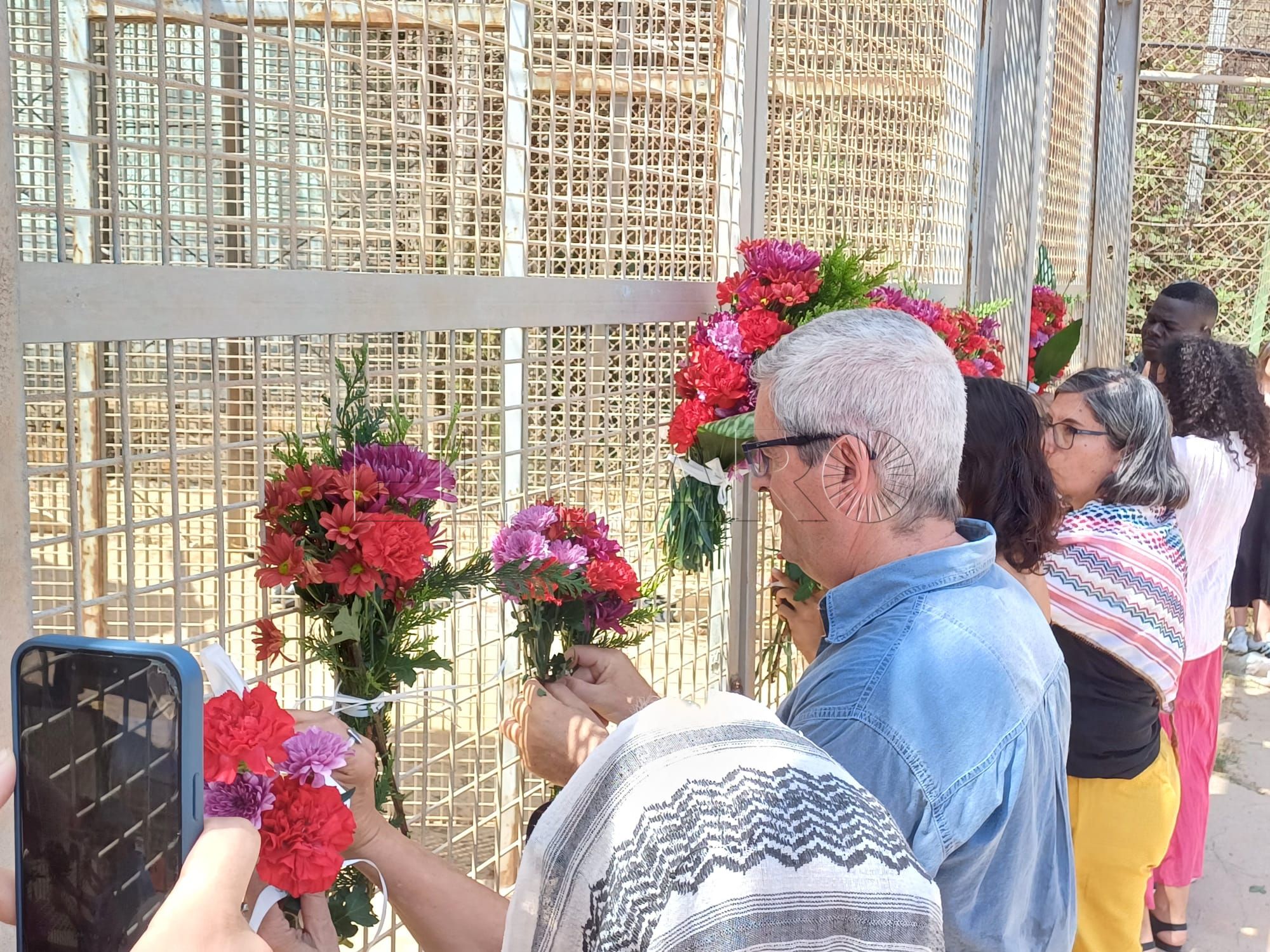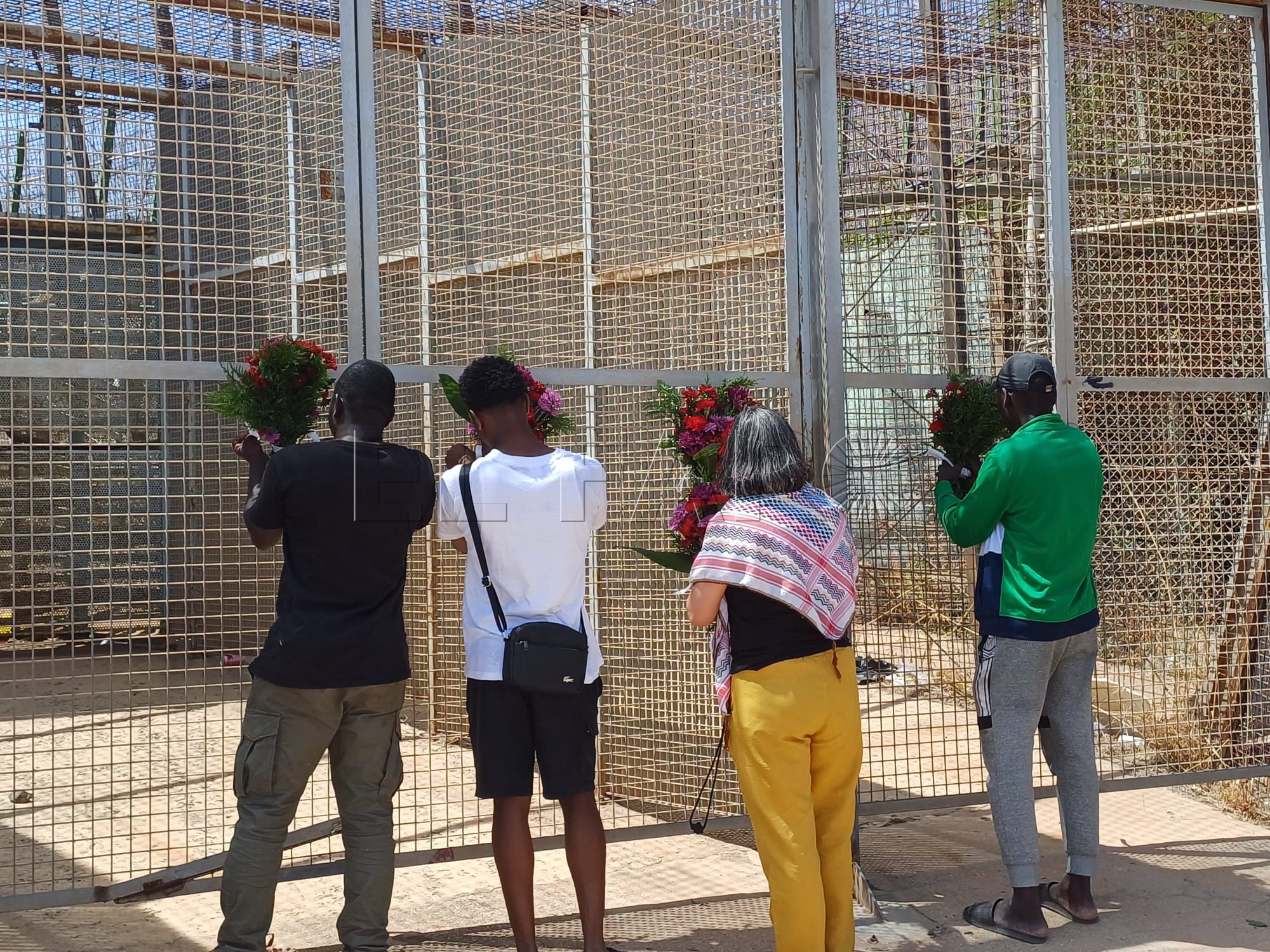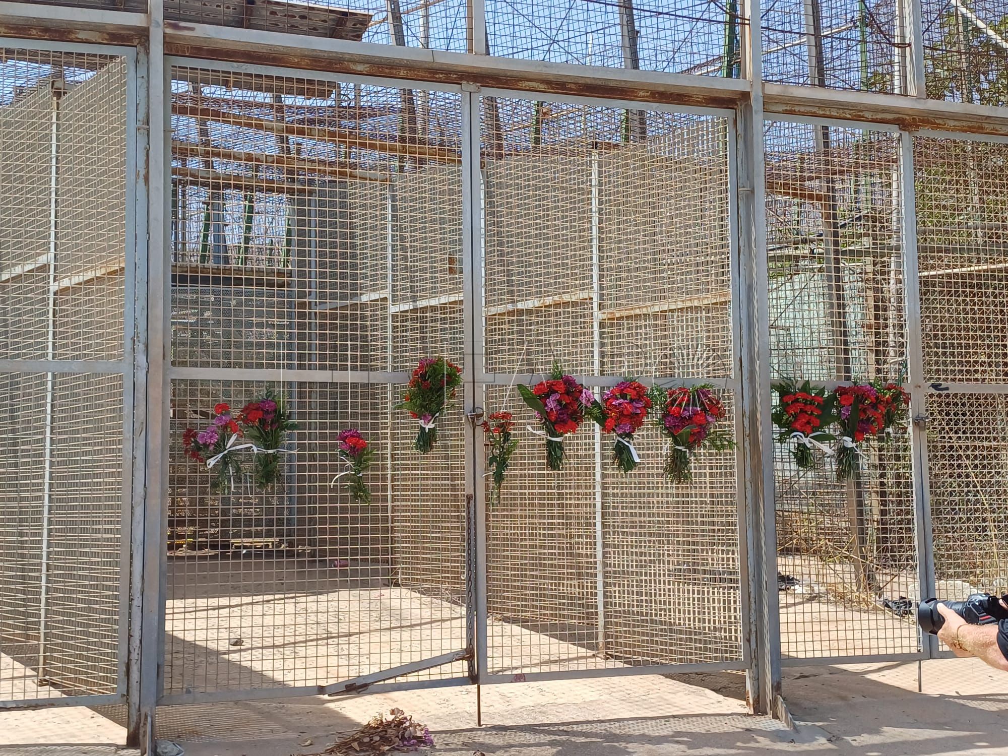 ONGs melillenses como Mec de la Rue (MdLR) o Geum Doudou han participado una ofrenda floral en el paso fronterizo, como por otra parte, se viene desarrollando desde que ocurrió la masacre en el lado marroquí de la frontera.