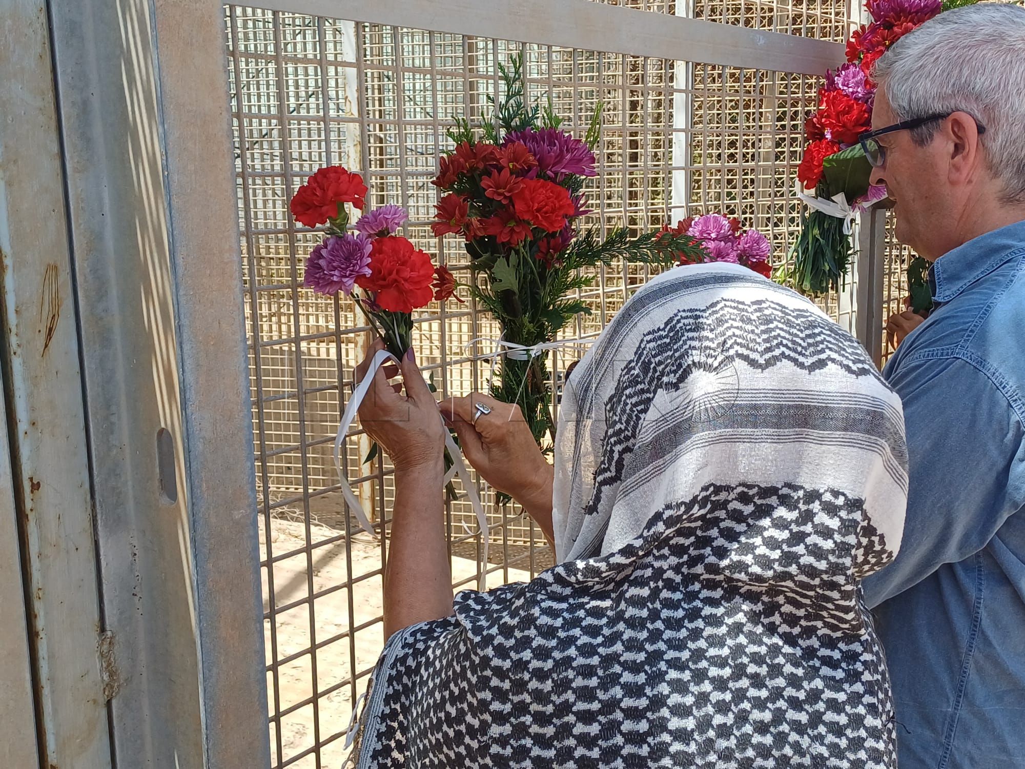 Fue después cuando los presentes pusieron los ramos de flores en el paso fronterizo.