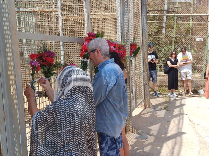 Fue después cuando los presentes pusieron los ramos de flores en el paso fronterizo.