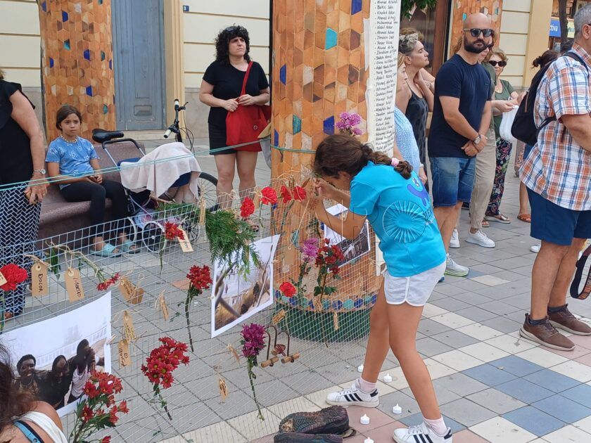 También se ha instalado una representación de la valla, con fotografías del día de la tragedia, así como con flores y elementos varios para recordar a las víctimas.
