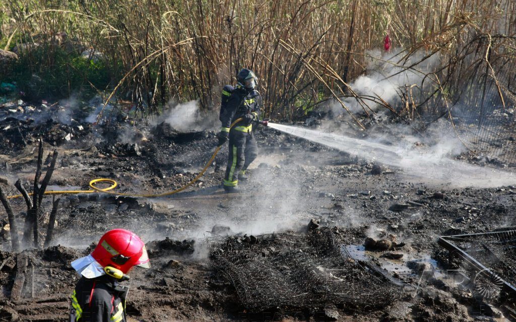 El fuego ocurrió a las 9:15 horas en los aledaños de Palma Santa. Una mujer y un niño subsaharianos tuvieron que ser rescatados, aunque afortunadamente no hubo que lamentar heridos.
