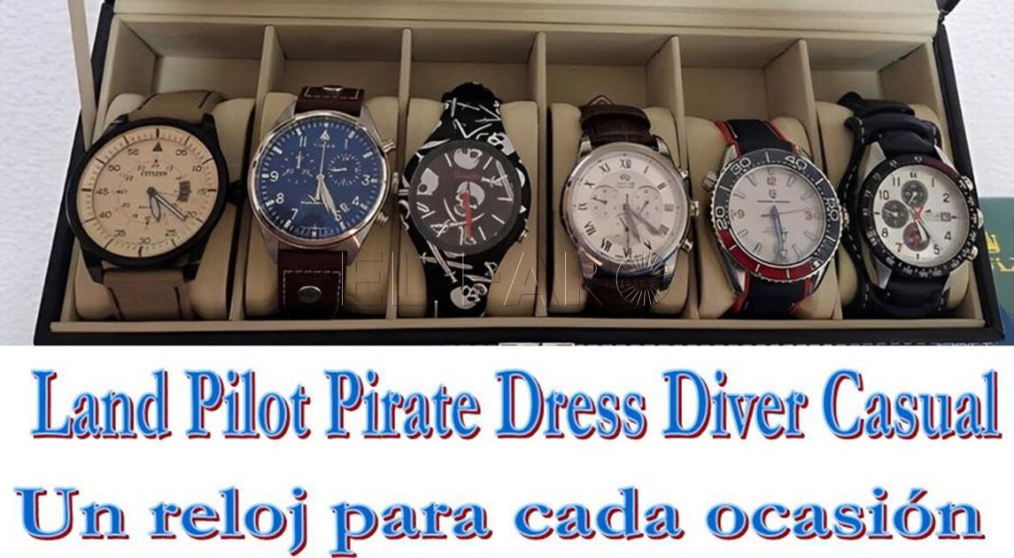 En este año que se va a celebrar por primera vez el Día Mundial del Reloj el próximo 10 de octubre destacar la importancia que todo hombre y mujer que se precie debe usar un reloj ya sea analógico o digital no sólo con el único propósito de ver la hora, sino además de ser empleado como un accesorio de proyección de imagen personal. La elección de un reloj es una declaración de estilo y estatus que pretende comunicar buen gusto y sofisticación. La imagen de un reloj analógico clásico transmite tradición y artesanía mientras que los digitales modernos proyectan precisión y vanguardia tecnológica. El reloj nos hace ser puntuales y mejora nuestra gestión del tiempo sin tener que sacar el teléfono móvil para ver la hora. Un reloj de alta gama analógico puede ser una excelente inversión con un añadido sentimental frente a dispositivos electrónicos que se vuelven obsoletos con rapidez. En definitiva los relojes pueden comunicar silenciosamente aspectos del carácter del portador, pudiendo convertirse en piezas de herencia que pasan de generación en generación. Según cada ocasión se puede describir seis tipos de relojes: Casual, Dress, Diver, Pilot, Land y Pirate. Los relojes casuales están concebidos para el uso diario, los Dress con relojes formales para vestir, los Divers son relojes resistentes al aguan con biseles giratorios para medir el tiempo de inmersión; también utilizados para los amantes de los deportes náuticos. Los Pilot son relojes diseñados para la aviación con esferas grandes y fáciles de leer. Los Land son relojes concebidos para uso militar, policial y aventurero con correas tipo Nato. El último es ese tipo reloj divertido muy utilizado en época estival que yo denomino con la acepción de “Pirate”. Son seis tipos de relojes que se adaptan para cada ocasión que combinamos con nuestro estado de ánimo para ser utilizados de forma diferente cada día. Para ello sugiero seis relojes de mi colección personal.