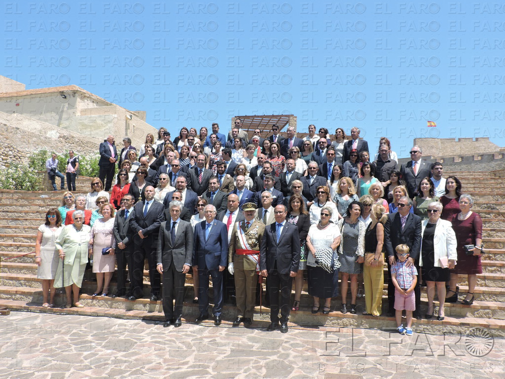 Las autoridades posaron junto a los 105 civiles que juraron la bandera española.